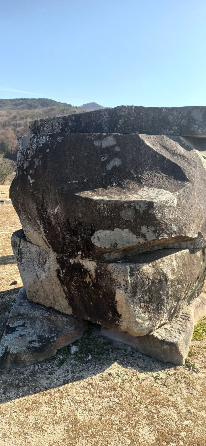 이 탑이 위치한 곳에서 아래를 내려다보면 한눈에 거돈사지를 볼 수 있다. 서쪽으로 서서히 기울어가는 늦가을 오후의 햇살을 받으며 노래진 잔디가 더욱 따스한 빛을 띠어서인지 거돈사지는 무척 평온하고 따스해보였다.