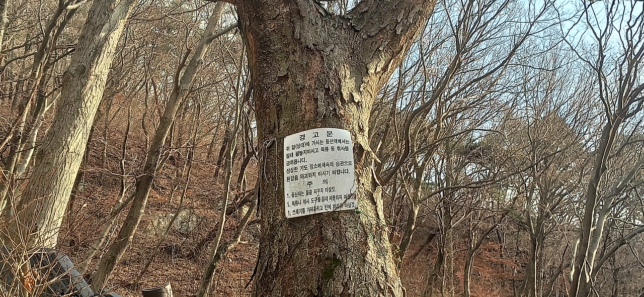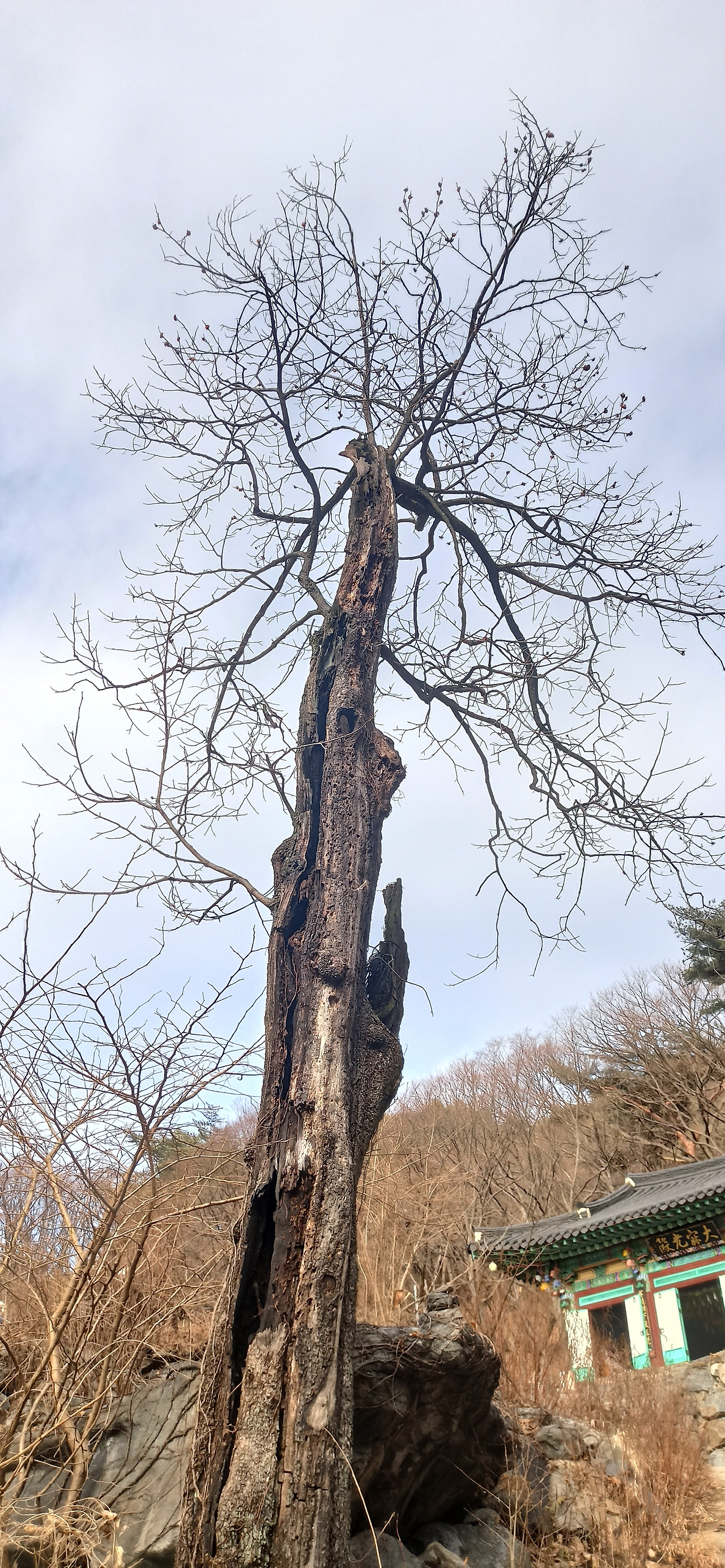 그럼에도 불구하고 절 앞을 지키는 오래된 감나무의 기묘한 모습들, 차 한 잔 들고 가시라고 몇 번을 부르시던 친절한 보살님 덕분에(코로나 상황이라 극구 사양했지만 참 감사했다) 좋은 인상으로 남았다. 운전에 자신이 있다면 한 번쯤 올라가 보시라고 추천하고 싶다. 등산을 좋아하시는 분이라면 아래에 차를 두고 올라가도 괜찮을 것 같다. 우리가 절을 둘러보고 내려올 무렵 한 떼의 등산객들을 만났는데, 등산객들이 많이 찾는 곳인 듯했다. (그러고 보니 대적광전 옆의 고목에 등산객들을 향한 경고문이 있었는데 인상적이었다. 절대 불 놓지 마시고 육류 등 취사를 하지 말라고... 사람들이 등산 와서 고기들을 막 구워 먹었나 보다.--;;)