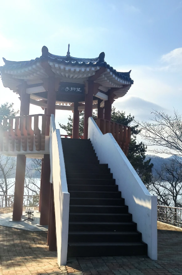 박물관을 나와서 호수 쪽으로 20m쯤 걸어가면 '망향정'이라는 정자가 있다. 이곳에 서면 정면으로 양각산, 오른쪽으로 아미산이 호수를 사이에 두고 보인다.