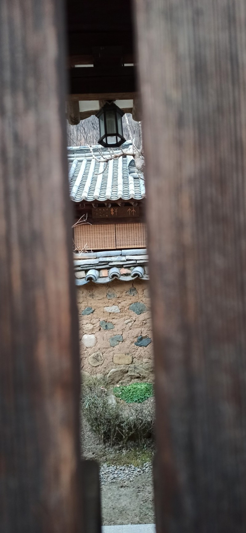 안쪽 모습이 너무 궁금해 나무 대문 사이사이에 난 틈으로 들여다보았더니, 대문을 들어서도 바로 집안이 보이지 않도록 쌓은 작은 담이 또 있었다. '헛담장'이라 불리는데 그 옛날에도 사생활을 참 중시해서 만든 구조라는 생각이 들었다.