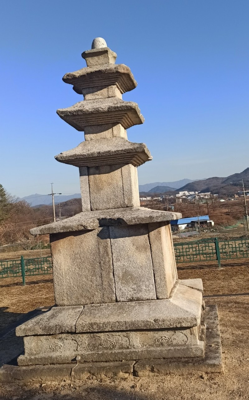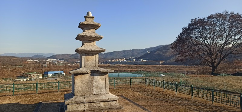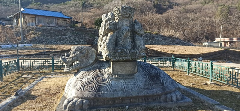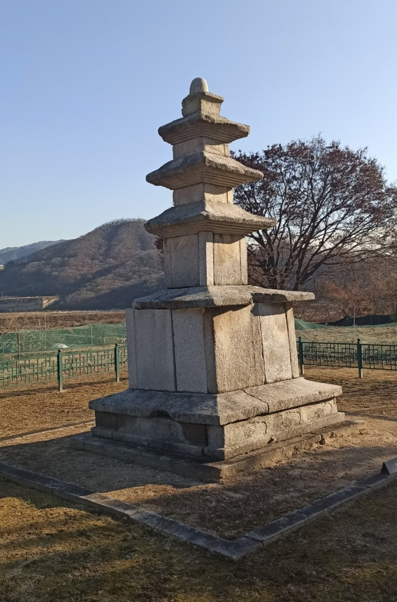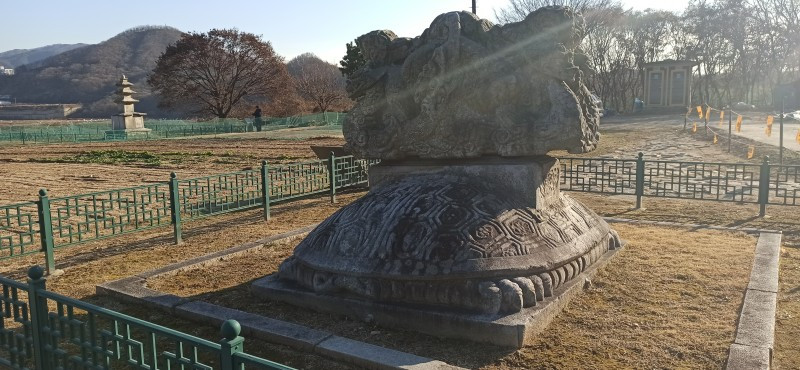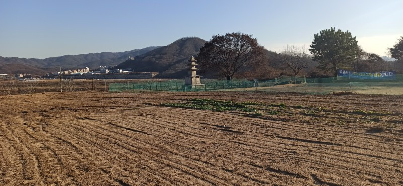 새해 처음으로 소개할 곳은 강원 원주시 지정면 안창리 517-2외 7필지에 있는 폐사지 '흥법사지'이다. 작년 11월 중순에 다녀왔던 곳으로, 올 겨울 들어 처음 얼음을 봤던 곳이기도 하다. 늦은 오후에 찾았음에도 '감운대'라고 쓰인 주초석과 나란히 놓인 우묵 패인 주춧돌 안에 고였던 물이 얼음이 된 채 남아있어서, 이곳이 강원도는 강원도구나~ 하는 생각을 들게 했던 곳이기도 하다. 앞서 찾았던 원주 법천사지와 거돈사지는 절터가 꽤 너른 편이어서 이곳도 각오를 하고 왔는데, 의외로 이곳은 작았다. 영봉산 산비탈 밭 한가운데 자그맣고 쓸쓸하게 있어서, 일부러 찾지 않는 한 그냥 지나치기 쉬운 곳이었다. 이곳이 한때는 절이었음을 보여주는 탑비마저도 비신은 사라지고 귀부 위에 이수만 덩그러니 얹혀있는 모습이 이채로웠으나, 삼층석탑만은 겨울 햇살을 받으며 당당히 서있었다. 무엇보다 절터에서 바라보는 전경이 앞에 가린 것 없이 툭 트여있어서 가까운 시내와 먼 산까지 한눈에 들어와 개방감이 있어서 좋았다.