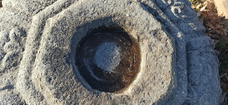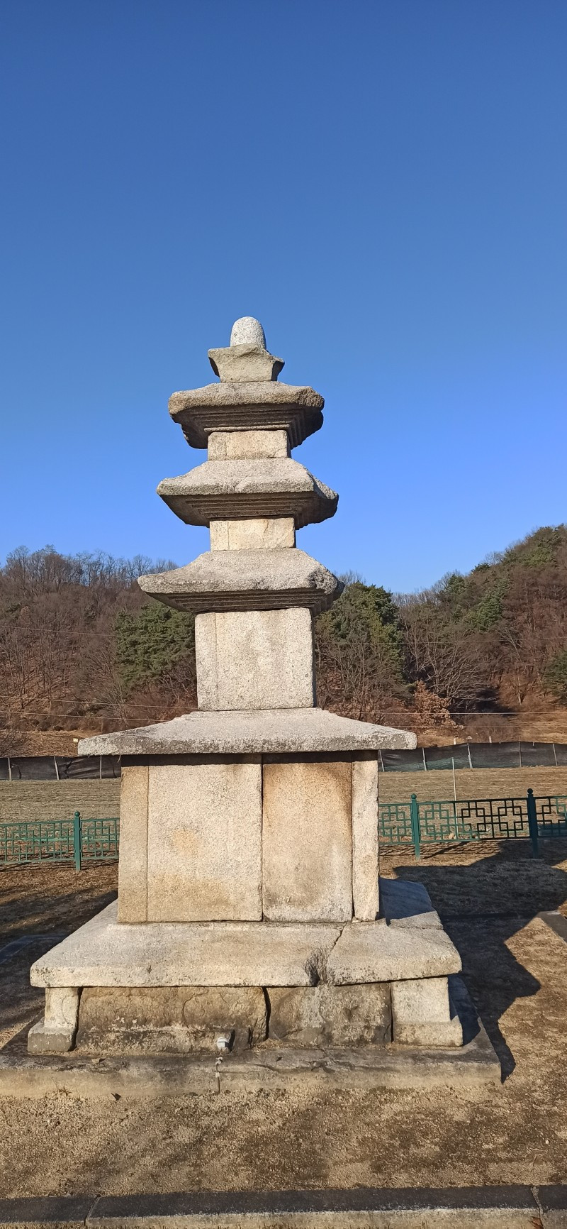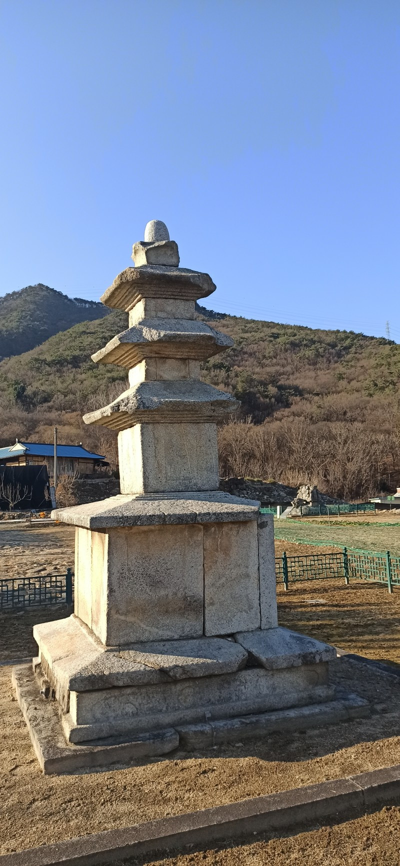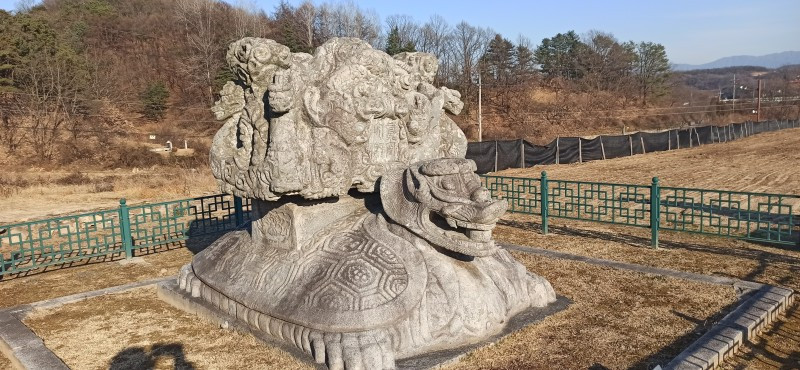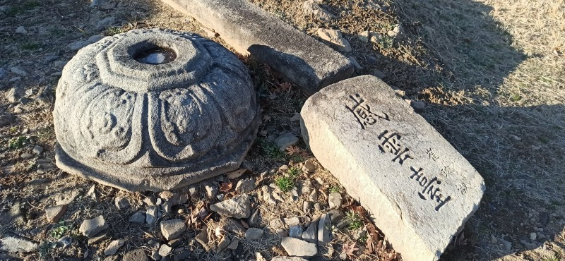 새해 처음으로 소개할 곳은 강원 원주시 지정면 안창리 517-2외 7필지에 있는 폐사지 '흥법사지'이다. 작년 11월 중순에 다녀왔던 곳으로, 올 겨울 들어 처음 얼음을 봤던 곳이기도 하다. 늦은 오후에 찾았음에도 '감운대'라고 쓰인 주초석과 나란히 놓인 우묵 패인 주춧돌 안에 고였던 물이 얼음이 된 채 남아있어서, 이곳이 강원도는 강원도구나~ 하는 생각을 들게 했던 곳이기도 하다. 앞서 찾았던 원주 법천사지와 거돈사지는 절터가 꽤 너른 편이어서 이곳도 각오를 하고 왔는데, 의외로 이곳은 작았다. 영봉산 산비탈 밭 한가운데 자그맣고 쓸쓸하게 있어서, 일부러 찾지 않는 한 그냥 지나치기 쉬운 곳이었다. 이곳이 한때는 절이었음을 보여주는 탑비마저도 비신은 사라지고 귀부 위에 이수만 덩그러니 얹혀있는 모습이 이채로웠으나, 삼층석탑만은 겨울 햇살을 받으며 당당히 서있었다. 무엇보다 절터에서 바라보는 전경이 앞에 가린 것 없이 툭 트여있어서 가까운 시내와 먼 산까지 한눈에 들어와 개방감이 있어서 좋았다.