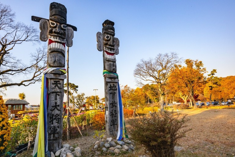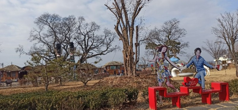 한국에서 최초로 피아노가 들어온 곳으로 알려진 대구광역시 달성군 화원읍 사문진나루터. 작년 가을 이곳을 다녀온 이웃의 글을 보고 호기심이 생겨 가봐야겠다고 찜을 해두었는데, 12월 중순쯤 KBS에서 하는 '김영철의 동네 한바퀴'라는 프로그램에서 이곳이 또 소개되었다. 그러니 안 가볼 수가 있나? 2020년을 넘기기 전 마지막 주말에 찾은 곳이 바로 사문진나루터이다. 사문진(沙門津)은 현재의 대구광역시 달성군 화원읍 성산리와 경상북도 고령군 다산면 호촌리를 연결하는 나루터였다. 낙동강과 금호강이 합류하는 지점의 남쪽에 위치하여 낙동강 물류의 요충지이자 대구로 통하는 관문 역할을 수행하였으며, 조선 시대에는 한때 이곳에서 일본 상인과의 무역이 이루어지기도 하였다. 1446년(세종 28)부터 성종 대까지 40년간은 무역 창고인 화원창(花園倉)으로 활용되었으며, 1472년(성종 3)에 대일 무역의 중심지 역할을 한 왜물고(倭物庫)가 설립된 지역이다. 또한 1900년(고종 37) 미국 선교사 사이드보텀[Richard H. Sidebotham, 한국명: 사보담]에 의해 피아노가 한국 최초로 이곳을 통해 대구로 운송되었으며, 1932년에는 한국 영화계를 대표하는 감독 이규환의 「임자 없는 나룻배」가 촬영된 곳으로 추정되는 곳이기도 하다. 이 일대는 1928년에 일제에 의해 화원 유원지로 조성되어 일제강점기 말까지 번창하였고, 8·15 광복 후에도 부산 구포에서 경상북도 안동 사이를 오르내리는 낙동강 뱃길의 중간 기착지 역할을 하였다. 그러나 관리 부재로 한동안 쇠락하다가 1979년에 (주)금복주가 이 일대에 화원 동산을 조성하여 유원지로 관리하다 1993년에 대구직할시에 기부했고, 이후 달성군이 사문진 일원 개발에 주력함으로써 새롭게 낙동강의 관광 중심으로 부각되고 있다. 2015년 1월 1일자로 관리권이 대구광역시에서 달성군으로 이관되었다. 사문진나루터는 1900년 3월 26일에 대구 지역 교회로 부임한 미국인 선교사 사이드보텀 부부가 한국 최초로 피아노를 들여온 역사적인 장소이다. 피아노는 이곳 사문진나루터에 내려져 짐꾼 20여 명이 사흘에 걸쳐 대구 종로(현재의 약전 골목 부근)에 있는 선교사 자택으로 옮겼다. 당시 피아노를 옮기던 짐꾼들이 빈 나무통 안에서 소리가 나는 것을 매우 신기하게 여겨 통 안에서 귀신이 내는 소리라 하여 '귀신통'이라고 불렀다고 한다. 달성군에서는 이런 역사적 사실을 기념하기 위하여 2012년부터 전국 최초로 '100대 피아노 콘서트'를 매년 10월 개최하고 있으며, 2013년 9월에는 뮤지컬 「귀신통 납시오」를 제작 공연하였다. 역사 공원에는 이빨이 피아노건반인 피아노 장승도 세워져 있다. 달성군은 버려져 있던 낙동강 옛 사문진나루터 자리에 한옥 형태의 전통 주막 3채를 지어 '사문진 주막촌'을 복원하였다. 전통을 살린 주막촌의 복원은 경상북도 예천군 삼강 주막촌에 이어 전국에서 두 번째라고 한다. 삼강 주막촌은 좀 쓸쓸한 편이었는데, 이곳은 대구 시내와 가까운 곳에 위치하고 있어서 코로나시기임에도 비교적 많은 사람들이 찾고 있었다. 대전 근교 대청댐 물문화관 주변과 로하스 광장이 늘 사람들로 북적이는 것과 비슷한 느낌이랄까. 사문진 주막촌의 중심에는 500년 된 팽나무가 있어 옛정취를 느낄 수 있는데, 이곳에 눈이 내린 풍경은 참으로 운치가 있다. 사문진나루터는 나루터라는 이름에 걸맞게 유람선도 운행중이었다. 달성군이 주막촌을 조성한 이후 1년여 만에 나루터~강정보~옥포 신당리~나루터를 순항하는 유람선을 취항시켰는데, 이로써 사문진이 지역을 먹여 살리는 새로운 관광 산업의 모델로 떠오르게 됐단다. 주막촌, 나룻배, 유람선, 쾌속선이 어우러진 낙동강 최고의 명품 관광지로 부상한 것이다. 또한 사문진의 빛나는 역사와 문화는 「달성 아리랑」, 「사문진 연가」, 「사문진 나루」 등 가요로 만들어져 입에서 입으로 전해지고 있다. 사문진나루터와 주막촌 위에 위치한 화원동산도 함께 둘러보면 볼거리가 많다. 화원 동산은 전체를 5개 테마로 나누어 화원 동산 입구와 주차장 주변에는 군 상징물과 관광지 캐릭터, 사문진 주막촌과 화원 동산 진입로에는 피아노와 문화 콘텐츠, 야생화 단지 가는 길에는 야생화 테마, 동물원 주변에는 동물 테마, 전망대 앞과 강변에는 창작 미술 테마 등 창의적이고 개성 있는 테마 벤치를 조성하여 새로운 볼거리를 제공하고 있다. 2016년에는 화원 동산 키즈 카페를 개장하였고, 친환경 전기차와 더불어 여름에는 수영장을 개장하고, 그 외 기간에는 미니 랜드를 조성하여 사계절 내내 다양한 즐길 거리를 제공하여 모든 연령층이 즐겁게 이용하는 장소이다. 그래서인지 가족단위 방문객들이 대부분이었다. 유모차를 밀고 가는 젊은 부부, 손주 손녀 손을 잡고 가는 할머니 할아버지, 초등생 아이들과 함께 산길을 오르거나 키즈카페 부근에서 놀이를 하는 가족 등이 많이 보였다. 달성군 화원읍 성산리에 위치한 화원 동산은 화원 토성 위에 조성되었다. 이 때문에 화원 동산 안에는 신라 시대에 조성된 것으로 보이는 토성과 상화대[賞花土臺], 성산리 고분 떼가 곳곳에 남아 있다. (모두 신라 시대 호족들의 