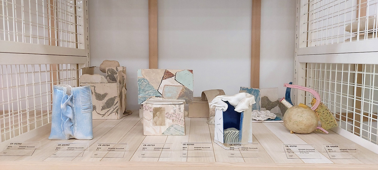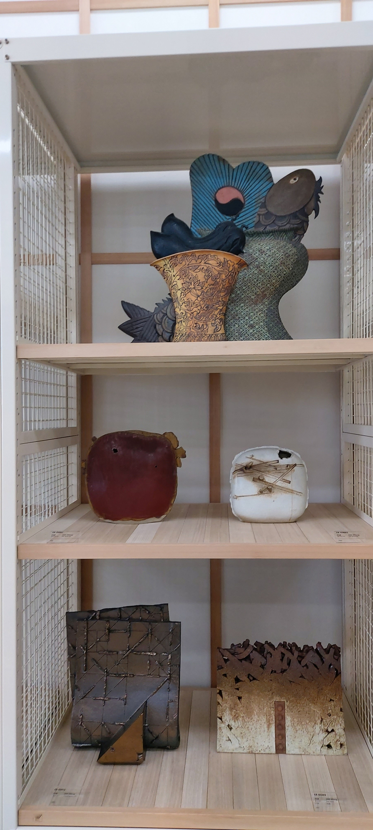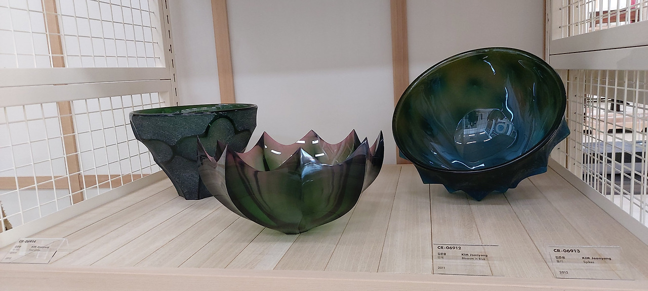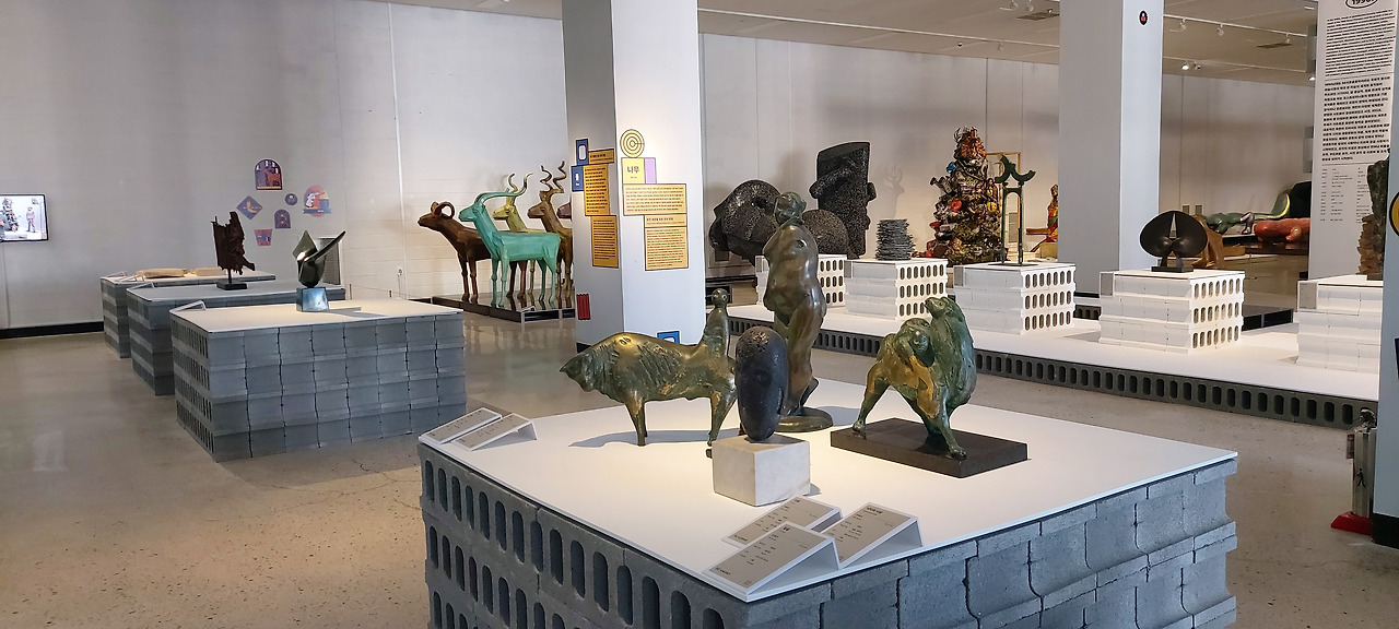 1층 개방수장고에는 국립현대미술관의 소장품 중 주로 조각으로 분류된 입체 유형의 작품 170점이 보관 전시되어 있다. 또한 개방수장고 안쪽에 있는 2수장고에서는 400여점의 공예 소장품들을 볼 수 있다. 개관 당시 2수장고는 공개되지 않았던 곳이다. 국립현대미술관 청주관 미술품수장센터는 수장형 미술관이라서 미술관의 소장품을 보관하는 비밀스러운 공간인 수장고를 관람객이 직접 들어가 볼 수 있다는 것이 특징이다. 개방 수장고는 그 특성상 기획된 전시와는 달리 특정한 주제와 의도를 갖지 않고 작품과 공간을 체험할 수 있도록 하는 것이 목적이다. 또한 작품들이 휴식을 취하는 곳인 만큼 전시 혹은 보존처리를 위한 일부 이동 이외에 변화가 크거나 빈번하지 않은 공간이다. 그러다보니 개관 이후 쭉 같은 작품들이 전시되어 있다가 2020년 12월 3일 개관 이후 첫 번째로 개편이 이루어졌다. 이번 개편에서는 새로운 각도로 공간과 작품을 볼 수 있도록 조각이라는 매체가 가진 물성을 강조하여 수장고 속 작품들을 재분류 및 재배치하였다고 한다. 그래서 작품의 위치만 바뀌었을 뿐 전에 왔을 때 봐서 눈에 익은 작품들이 많았다. 조각은 깎거나 붙여 형상을 만들어내는 오래된 예술 표현 방식으로, 삼차원의 공간 속에 구현된다. 회화나 사진 등 평면 매체와 달리 견고한 양감을 전달하며 상대적으로 물리적, 화학적 변화에 강하다는 특징을 갖는다. 전통적인 조각 작품이 주로 나무, 돌, 흙과 같은 자연적인 재료로 제작되었다면, 현대의 조각은 산업사회의 부산물인 철, 플라스틱, 일상 오브제 등 매체 자체의 한계를 벗어나 다양한 방식으로 창작되고 있다. 이번 개편에서는 소장품을 통해 조각의 흐름을 살펴볼 수 있도록 연대별, 재료별로 분류했다고 한다. 개방 수장고는 작품을 보존 보관하는 공간이지만 동시에 관람객이 직접 작품과 보존 환경을 관람하는 전시의 역할을 수행한다. 이러한 목적을 수행하기 위해 국립현대미술관 청주는 2019년 공예 소장품 400여 점을 이관하여 2019년 10월 8일부터 공개해오고 있다. 공예는 전통적으로 우리 생활에 유용한 미적 사물들을 가리켜왔다. 소위 장인들이 시간과 정성을 들여 아름답게 만들어 낸 실생활에 유용한 각종 기물들이었던 것이다. 다양한 방식과 형태로 우리 생활을 풍요롭게 해주었던 공예는 산업화와 각종 기술의 발전과 함께 그 역할과 범위를 더욱 확대해 나가기 시작했다. 일반적으로 공예는 재료에 따라 도자공예, 목공예, 금속공예, 유리공예, 섬유공예 등으로 나뉘는데 그 재료와 제작방식에 따라 매우 다양하고 각자 뚜렷한 개성을 갖고 있어 하나로 묶어내기 어려운 장르이기도 하다. 하지만 동시에 그 다양성으로 인해 더욱 밀접하게 우리 생활과 연결되어 있으며 친근하게 접근할 수 있는 장르이기도 하다. 이번 공예 소장품의 공개는 그간 수집해 소중하게 보관해 온 작품들을 최대한 다양하게 공개함으로써 공예의 다양성을 직접 마주할 수 있다. 타 장르에 비해 비교적 자주 소개되지 않았던 공예 작품을 한꺼번에 한 공간에서 볼 수 있는 기회인 것이다. 도자, 나무, 금속, 유리, 섬유 등 다양한 재료와 형태의 공예 소장품을 하나하나 자세히 살펴보며 공예를 더욱 친근하고 즐겁게 접할 수 있다. 특히 수장고의 모습을 실제 사용하는 공간과 가장 가깝게 재현함으로써 전통과 현대, 보관과 전시라는 다소 이질적 특성을 담고 있는 공예와 미술품수장센터의 연결성을 느낄 수 있다. 또한 전통과 현대의 조화, 쓰임의 역할과 아름다운 조형성의 추구 등 더욱 확장된 동시대 공예의 모습을 발견하고, 공예의 흐름, 과거와 현재 혹은 미래의 공예를 생각해 볼 수 있는 기회가 된다. 기억에 특별히 남는 작품은 일할 때 주로 쓰는 목장갑을 이용해 만든 공예품이었다. 나는 주로 목장갑을 텃밭에서 일할 때 쓰는 편인데, 노동현장의 필수품인 목장갑이 이렇게 독특한 예술품으로 태어날 수 있다니~!!! 작가의 새로운 시도와 창의적인 발상에 박수를 보낸다. * 각 층별로 소개할 내용들이 많아서 이번 전시관람기는 총 3부로 나눠서 쓰려 합니다. 2부도 기대해 주세요^^