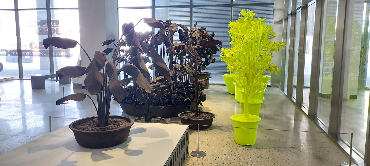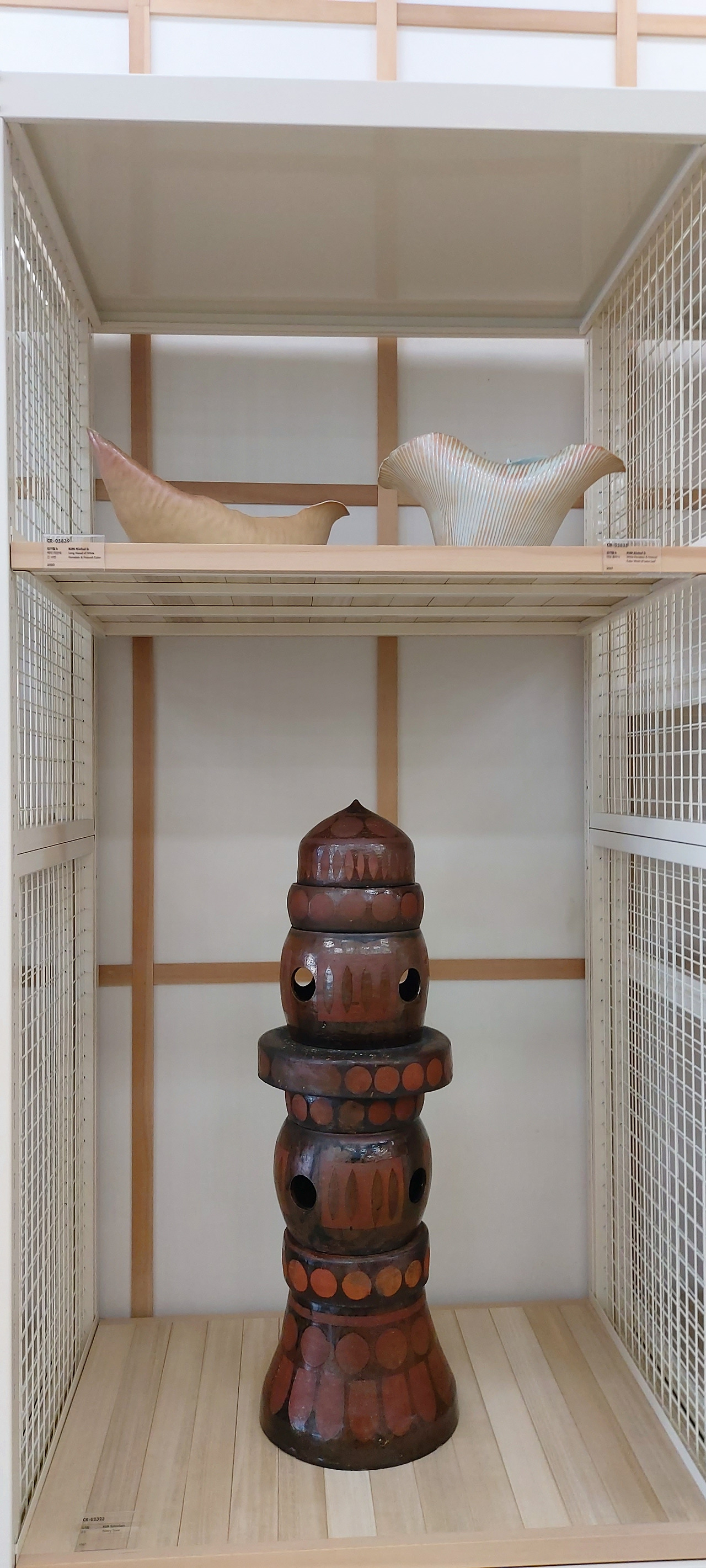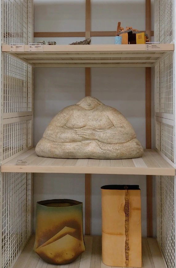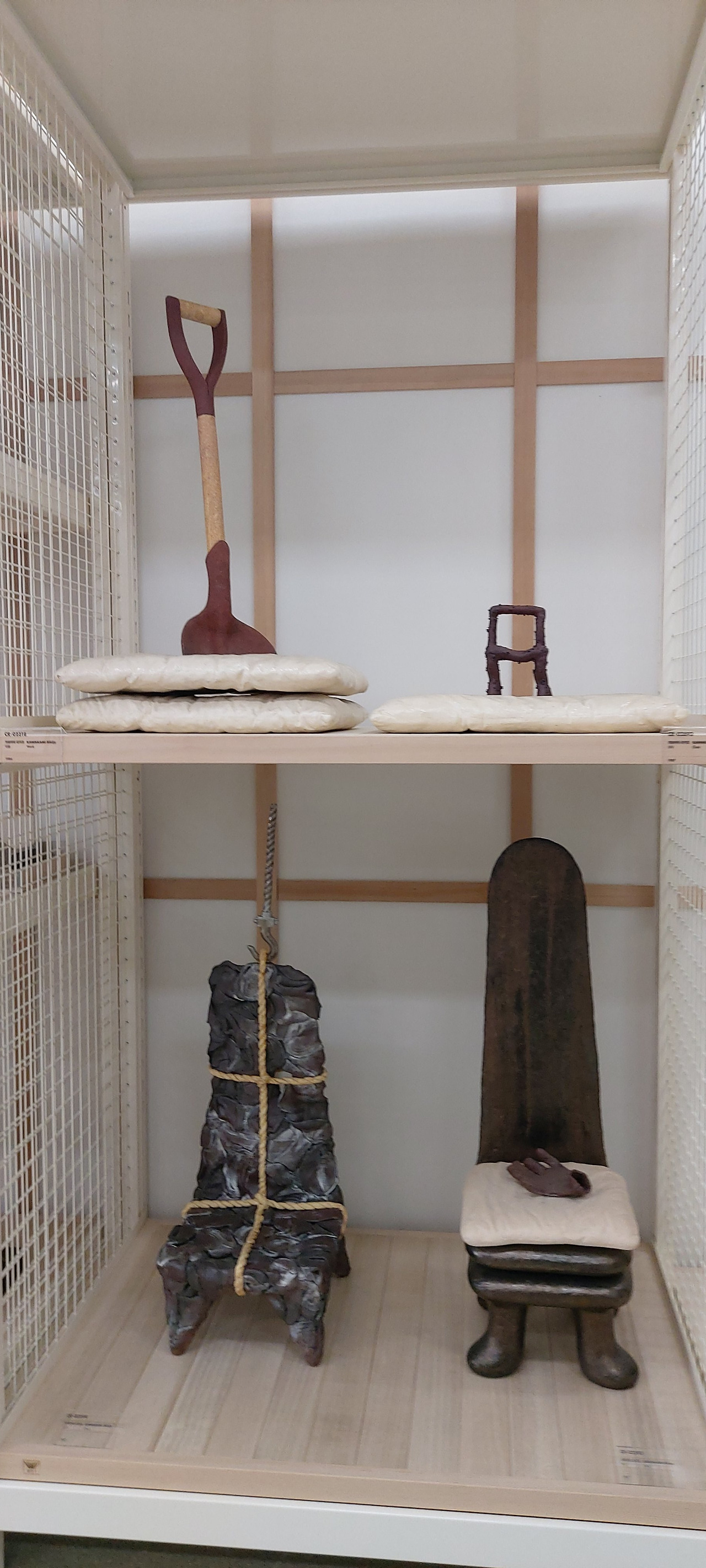 1층 개방수장고에는 국립현대미술관의 소장품 중 주로 조각으로 분류된 입체 유형의 작품 170점이 보관 전시되어 있다. 또한 개방수장고 안쪽에 있는 2수장고에서는 400여점의 공예 소장품들을 볼 수 있다. 개관 당시 2수장고는 공개되지 않았던 곳이다. 국립현대미술관 청주관 미술품수장센터는 수장형 미술관이라서 미술관의 소장품을 보관하는 비밀스러운 공간인 수장고를 관람객이 직접 들어가 볼 수 있다는 것이 특징이다. 개방 수장고는 그 특성상 기획된 전시와는 달리 특정한 주제와 의도를 갖지 않고 작품과 공간을 체험할 수 있도록 하는 것이 목적이다. 또한 작품들이 휴식을 취하는 곳인 만큼 전시 혹은 보존처리를 위한 일부 이동 이외에 변화가 크거나 빈번하지 않은 공간이다. 그러다보니 개관 이후 쭉 같은 작품들이 전시되어 있다가 2020년 12월 3일 개관 이후 첫 번째로 개편이 이루어졌다. 이번 개편에서는 새로운 각도로 공간과 작품을 볼 수 있도록 조각이라는 매체가 가진 물성을 강조하여 수장고 속 작품들을 재분류 및 재배치하였다고 한다. 그래서 작품의 위치만 바뀌었을 뿐 전에 왔을 때 봐서 눈에 익은 작품들이 많았다. 조각은 깎거나 붙여 형상을 만들어내는 오래된 예술 표현 방식으로, 삼차원의 공간 속에 구현된다. 회화나 사진 등 평면 매체와 달리 견고한 양감을 전달하며 상대적으로 물리적, 화학적 변화에 강하다는 특징을 갖는다. 전통적인 조각 작품이 주로 나무, 돌, 흙과 같은 자연적인 재료로 제작되었다면, 현대의 조각은 산업사회의 부산물인 철, 플라스틱, 일상 오브제 등 매체 자체의 한계를 벗어나 다양한 방식으로 창작되고 있다. 이번 개편에서는 소장품을 통해 조각의 흐름을 살펴볼 수 있도록 연대별, 재료별로 분류했다고 한다. 개방 수장고는 작품을 보존 보관하는 공간이지만 동시에 관람객이 직접 작품과 보존 환경을 관람하는 전시의 역할을 수행한다. 이러한 목적을 수행하기 위해 국립현대미술관 청주는 2019년 공예 소장품 400여 점을 이관하여 2019년 10월 8일부터 공개해오고 있다. 공예는 전통적으로 우리 생활에 유용한 미적 사물들을 가리켜왔다. 소위 장인들이 시간과 정성을 들여 아름답게 만들어 낸 실생활에 유용한 각종 기물들이었던 것이다. 다양한 방식과 형태로 우리 생활을 풍요롭게 해주었던 공예는 산업화와 각종 기술의 발전과 함께 그 역할과 범위를 더욱 확대해 나가기 시작했다. 일반적으로 공예는 재료에 따라 도자공예, 목공예, 금속공예, 유리공예, 섬유공예 등으로 나뉘는데 그 재료와 제작방식에 따라 매우 다양하고 각자 뚜렷한 개성을 갖고 있어 하나로 묶어내기 어려운 장르이기도 하다. 하지만 동시에 그 다양성으로 인해 더욱 밀접하게 우리 생활과 연결되어 있으며 친근하게 접근할 수 있는 장르이기도 하다. 이번 공예 소장품의 공개는 그간 수집해 소중하게 보관해 온 작품들을 최대한 다양하게 공개함으로써 공예의 다양성을 직접 마주할 수 있다. 타 장르에 비해 비교적 자주 소개되지 않았던 공예 작품을 한꺼번에 한 공간에서 볼 수 있는 기회인 것이다. 도자, 나무, 금속, 유리, 섬유 등 다양한 재료와 형태의 공예 소장품을 하나하나 자세히 살펴보며 공예를 더욱 친근하고 즐겁게 접할 수 있다. 특히 수장고의 모습을 실제 사용하는 공간과 가장 가깝게 재현함으로써 전통과 현대, 보관과 전시라는 다소 이질적 특성을 담고 있는 공예와 미술품수장센터의 연결성을 느낄 수 있다. 또한 전통과 현대의 조화, 쓰임의 역할과 아름다운 조형성의 추구 등 더욱 확장된 동시대 공예의 모습을 발견하고, 공예의 흐름, 과거와 현재 혹은 미래의 공예를 생각해 볼 수 있는 기회가 된다. 기억에 특별히 남는 작품은 일할 때 주로 쓰는 목장갑을 이용해 만든 공예품이었다. 나는 주로 목장갑을 텃밭에서 일할 때 쓰는 편인데, 노동현장의 필수품인 목장갑이 이렇게 독특한 예술품으로 태어날 수 있다니~!!! 작가의 새로운 시도와 창의적인 발상에 박수를 보낸다. * 각 층별로 소개할 내용들이 많아서 이번 전시관람기는 총 3부로 나눠서 쓰려 합니다. 2부도 기대해 주세요^^