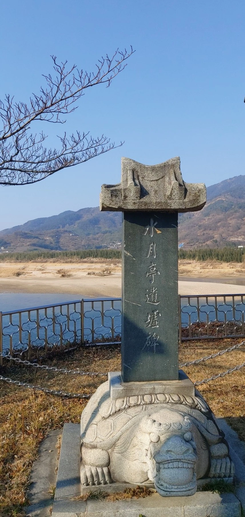 매화마을(섬진마을)에 가면 매화구경뿐만 아니라 꼭 들러야 할 곳이 한 군데 더 있다. 매화마을로 올라가기 전 왼쪽의 섬진강변에 마련된 커다란 주차장 건너편에 자리한 수월정(水月亭)이다. 이곳에 가면 오래된 문화유산과 유적들을 볼 수 있다. 주차장을 둘러싼 가로수길의 매화나무는 지금 마침 만개해서 매화마을에서 못다 핀 매화꽃을 보며 아쉬웠던 마음을 잠시 달랠 수도 있다.