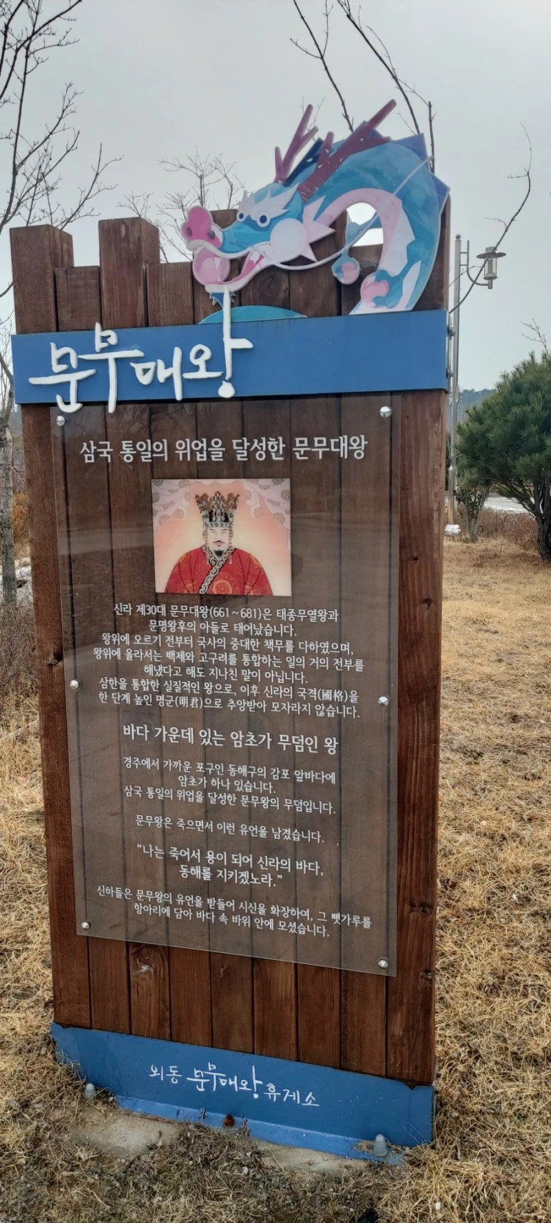 여행을 다니다보면 너무나 유명한 곳이라 당연히 갔겠지~ 하고 생각했는데, 알고보면 그냥 지나친 곳들이 있다. 2월 중순에 다녀온 경주 문무대왕릉과 감은사지가 그런 곳이다. 난 경주여행을 두 번이나 다녀왔기에 감은사지를 당연히 다녀왔다 여겼는데 안 가봤고, 남편은 문무대왕릉을 보고왔다 생각했는데 엉뚱한 울산의 대왕암을 갔다와선 경주랑 헷갈렸다.^^;; 감은사는 동해에서 신라 수도 경주로 들어가는 가장 빠른 길에 세워진 절이다. 문무왕이 삼국을 통일한 뒤 부처의 힘을 빌려 왜구의 침략을 막고자 동해 바다에서 경주로 가는 길목인 이곳에 절을 창건하였고, 이후 신문왕 2년 (682)에 완성하였다. 이곳은 문무왕의 명복을 빌기 위한 원찰이자 호국사찰, 성전이 설치되었던 사찰이었지만, 창건 이후 절의 역사는 자세히 알려져 있지 않다. 삼국을 통일하고 당나라 세력까지 몰아낸 문무왕은 시시때때로 쳐들어와 성가시게 구는 왜구가 마음에 걸렸다. 그래서 “내가 죽으면 바다의 용이 되어 나라를 지키고자 하니 화장하여 동해에 장사지내 달라."라고 유언하였다. 그 뜻을 받들어 장사지낸 곳이 대왕암이다. 동해의 용이 되어 나라를 지키겠다고 한 문무왕은 생전에 직접 대왕암의 위치를 잡고, 대왕암이 바라다보이는 용당산을 뒤로 하고 용담이 내려다보이는 명당에 절을 세웠다. 부처의 힘을 빌어 왜구를 막겠다는 생각으로 동해 바닷가에 절을 짓게 된 것이다. 그러나 절의 완성을 보지 못하고 왕위에 오른 지 21년 만에 세상을 떠나게 되어, 아들인 신문왕이 그 뜻을 이어 이듬해(682년)에 절을 완공하여 감은사라 이름하였다. 그 은혜에 감사한다는 뜻이 담겨있다. 감은사는 금당, 강당, 중문이 한 줄로 배치되어 있다. 금당 앞에 쌍탑이 있고 건물들을 회랑으로 두른 통일 신라의 전형적인 가람 배치를 보여 준다. 금당 밑에는 배수 시설이 있어 동해의 용이 된 문무왕이 드나들 수 있도록 하였다고 한다. 경북 경주시 양북면 용당리 55-3에 위치한 감은사지에는 현재 삼층석탑 2기와 금당, 강당 등의 건물터만 남아 있다. 금당터로 짐작되는 공간의 좌우에는 1300여 년의 시간을 뛰어넘어 통일신라시대 석탑으로는 가장 높고 우람한 2기의 삼층석탑이 우뚝 세워져있다. 그리고 감은사지로 올라가는 길목의 오른쪽에 수종을 알 수 없는 고목이 금당 탑마을 당나무로 서있다. 지금은 없어진 금당 대신 당나무 좌우로 보이는 동서 석탑의 모습이 그림처럼 아름다워 한참을 그윽하게 쳐다보게 된다. 국보 제112호인 감은사지 동서삼층석탑은 통일신라시대, 고려시대를 거쳐 조선시대까지 세워지는 모든 삼층석탑의 시원(始原)이 되는 석탑이라고 한다. 석탑은 백제에서 시작되었으나 그것은 단지 재료가 석재일 뿐 전체적으로 목탑의 구조를 그대로 따르고 있었다.(미륵사지석탑이 대표예) 이러한 복잡한 목조 구조를 단순화시킨 석탑 양식이 감은사지석탑에서 시작된 것이다. 감은사지석탑의 양식과 기존 석탑 양식의 가장 큰 차이점은 감은사지석탑의 기단이 이중기단이라는 점이다. 기단이 2중으로 되어 있다는 것은 목탑의 구조에서 완전히 벗어났다는 것을 의미한다. 이중기단으로 말미암아 상대적으로 탑신이 지상에서 높아져 전체 구성에 있어 매우 높은 안정감을 준다. 감은사지석탑은 화강암으로 조성된 것이 아니라 화강암보다 입자가 약한 응회암으로 이루어져 있다. 주변에서 생산되는 석재를 그대로 이용한 것이다. 전체적으로 사리장엄구를 안치한 3층탑신을 제외한 나머지 부분은 돌을 짜맞추는 방식으로 조립되었는데, 돌과 돌 사이를 연결하기 위하여 쇠로 만든 나비장이 사용되었다. 기단과 1층탑신 그리고 2층탑신 내부는 잡석과 흙으로 단단히 채워져 있다. 대부분의 탑들이 상륜부는 물론 그것을 꿰뚫는 찰주도 남아 있지 않은데 비해 감은사지탑은 동서탑 모두 찰주가 남아 있다. 현재 노출되어 있는 찰주의 높이는 3.9m이나 해체·수리시 찰주를 들어낸 결과 제작 당시 전체 높이가 5.0m에 이르는 주조된 철주로, 사리장엄구가 봉안된 3층탑신까지 연장되어 있음을 알게 되었다. 1959년과 1996년 서탑과 동탑이 각각 해체·복원되는 과정에서 신라 금속공예의 정수인 사리장엄구가 발견되었다. 이 다량의 공예품을 통하여 감은사지석탑이 당시 신라뿐 아니라 동아시아에서도 인정받는 뛰어난 예술품이라는 점과 함께 국제적 우수성과 독창성이 다시 한 번 확인되었다고 한다. (한국미의 재발견-탑. 중에서 참고) 감은사지와 동서삼층석탑을 두루두루 둘러본 뒤 그곳에서 차로 5분 거리에 있는 문무대왕릉으로 갔더니, 꽤 많은 사람들이 나들이 나와 있었다. 시원하게 툭 트인 바다도 구경할겸 가족단위로 오셨는데, 큼직한 창문이 달린 바닷가 카페가 아주 성업중이었다. 문무대왕릉은 직접 가볼 수 없어 바닷가 모래사장에 서서 쳐다보며 기념사진만 찍었다. 이 역사적인 곳을 직접 와봤다는 것에 의미를 두기로 했다. 이번 여행을 통해 남편이 잘못 알고 찾았던 울산의 대왕암은 문무대왕의 왕비가 묻힌 곳이라는 사실도 알게 되었다. 대왕암은 울주군 간절곶과 함께 해가 가장 빨리 뜨는 곳으로 신