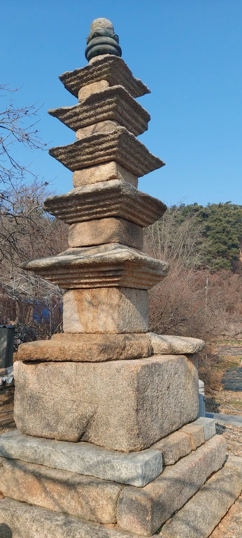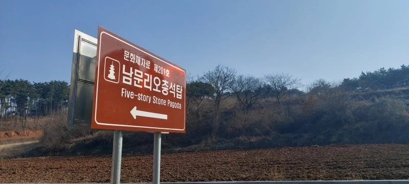 우리가 찾았던 날은 미세먼지가 심해서 풍경이 깨끗하지 않은데다, 일몰시간을 맞추려면 오래 기다려야해서 안타깝게도 백화산 일몰을 보진 못했다. 대신 백화산 내려오는 길에 남문리 오층석탑이 있는 곳을 들러 고려시대에 만들어진 오층석탑을 구경했다. 충청남도 문화재자료 제201호로 화강암으로 된 높이 약 5m의 석탑이다. 기단은 신라시대 양식이고 옥개석은 백제시대의 기법이 가미되어 있으나 전체적인 탑의 맵시로 보아 고려시대 후기의 작품으로 추정된다고 한다.