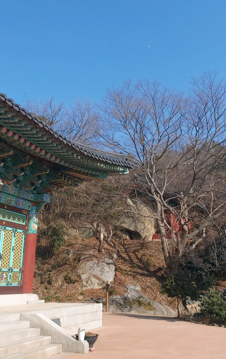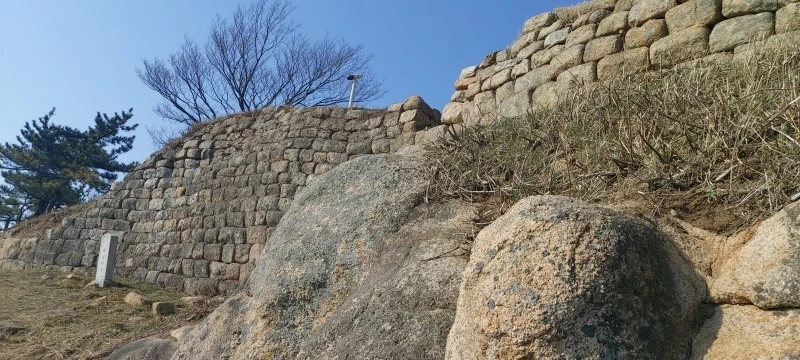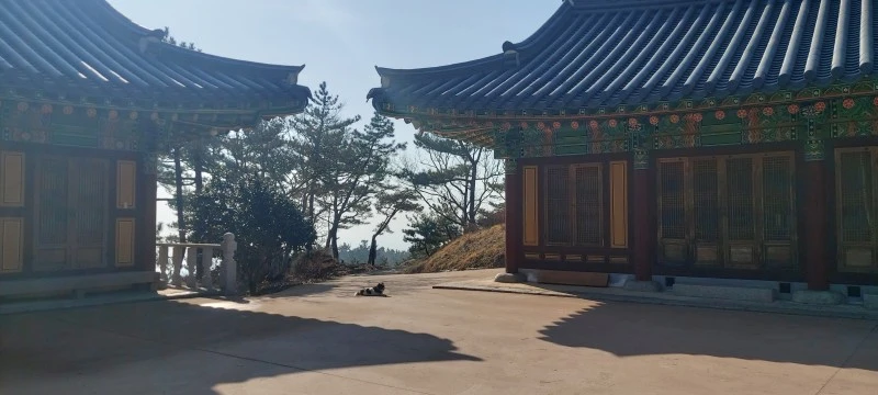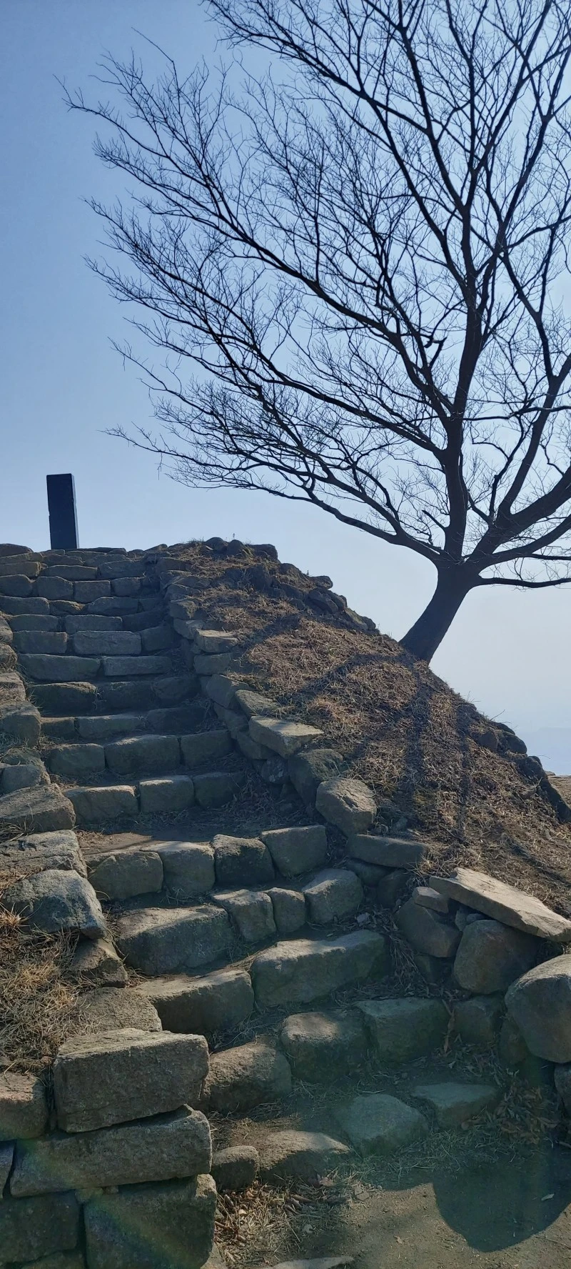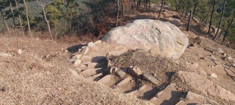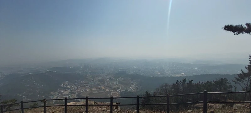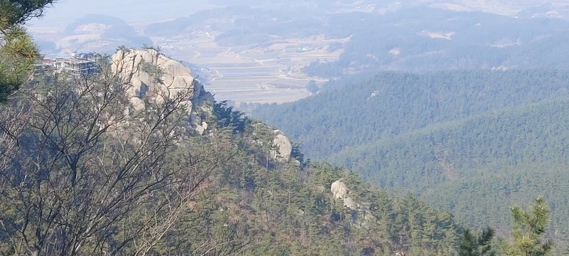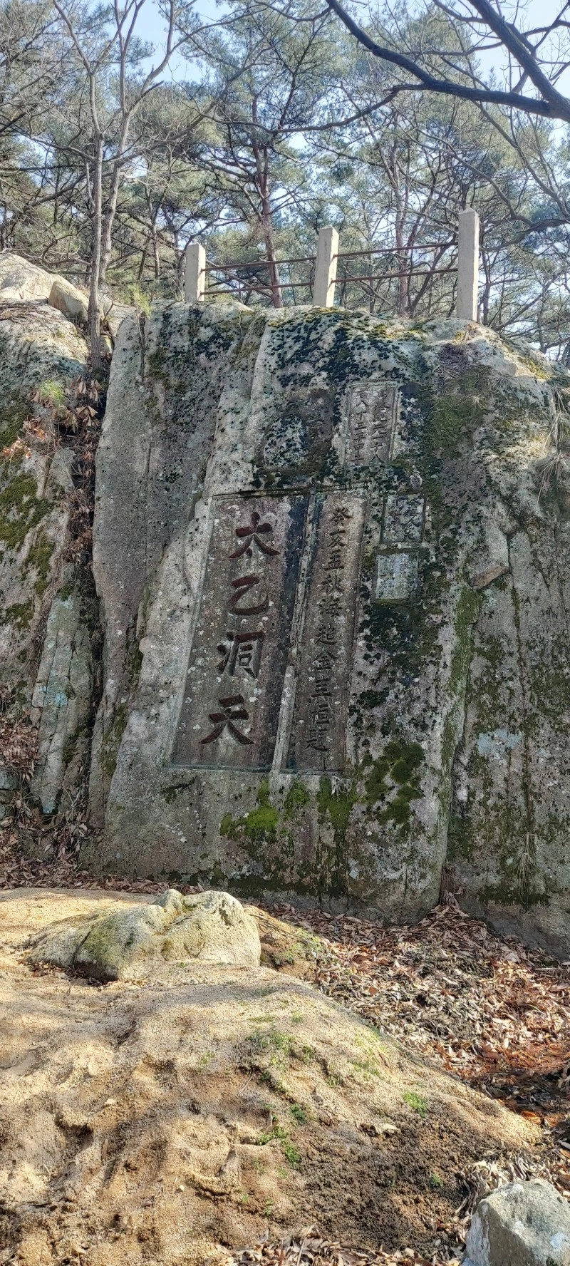 암석이 많아 물이 귀한 산이다보니, 우리가 갔던 때는 강수량 적은 늦겨울이라 개울이 말라있었지만 비가 많이 오는 때는 그 아래로 물이 흘러내린다고 한다. 태을동천 바위 위는 망향대라고 하는데 바둑판이 새겨져있어 그곳에서 신선들이 서해바다를 바라보며 바둑을 두었다고 전해진다. 그곳에서 정말 바다가 보이나? 하고 앉아서 바라봤는데 미세먼지가 짙은 탓에 잘 보이지 않았다.