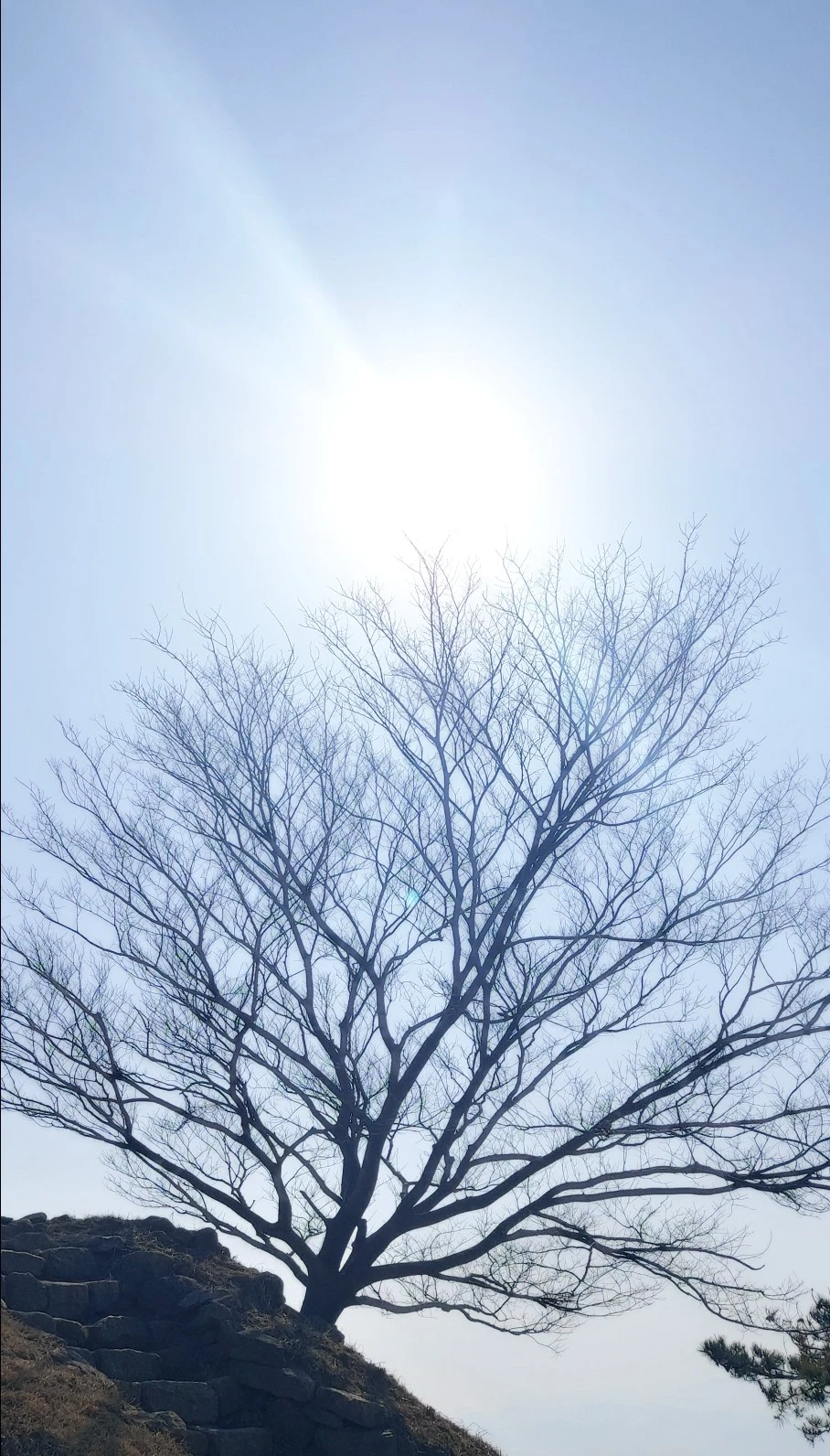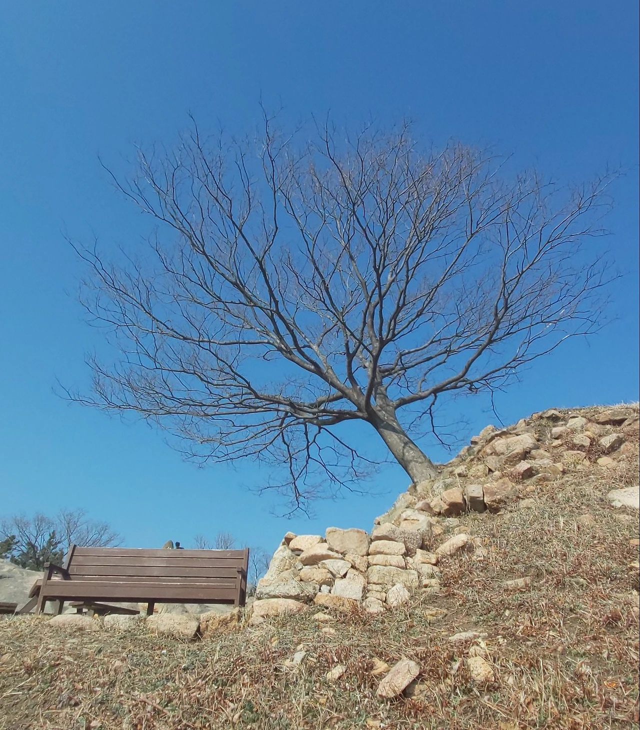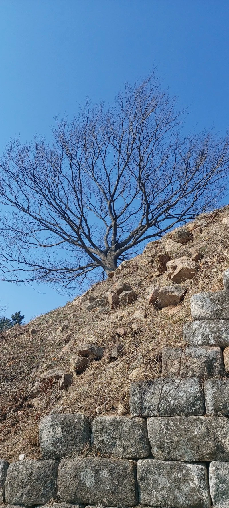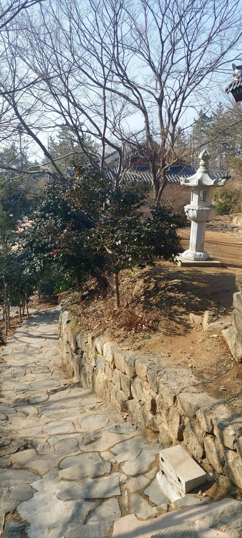 암석이 많아 물이 귀한 산이다보니, 우리가 갔던 때는 강수량 적은 늦겨울이라 개울이 말라있었지만 비가 많이 오는 때는 그 아래로 물이 흘러내린다고 한다. 태을동천 바위 위는 망향대라고 하는데 바둑판이 새겨져있어 그곳에서 신선들이 서해바다를 바라보며 바둑을 두었다고 전해진다. 그곳에서 정말 바다가 보이나? 하고 앉아서 바라봤는데 미세먼지가 짙은 탓에 잘 보이지 않았다.