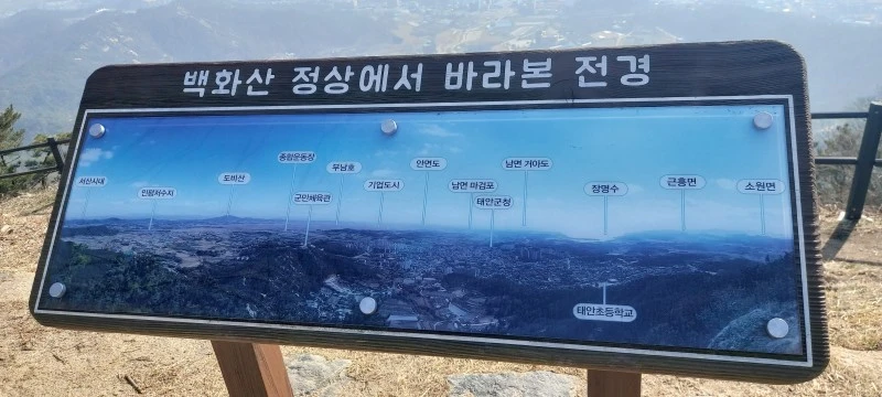 태안읍을 병풍처럼 감싸고 있는 백화산은 일몰이 아름답기로 유명하다. 태안을 소개하는 영상에서 백화산에 올라 바라보는 일몰풍경을 보여주는데 단번에 매료되었다. 그래서 안면암을 먼저 찾은 뒤, 이어서 찾아간 곳이 바로 백화산이다. 산의 모양이 마치 흰 꽃이 활짝 피어 있는 것 같이 보인다고 해서 붙여진 이름이라고 한다. 태안의 1경이 바로 이곳이다.