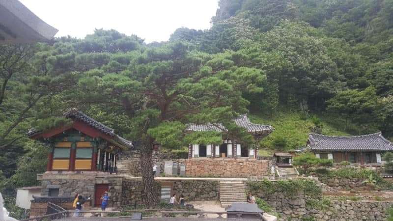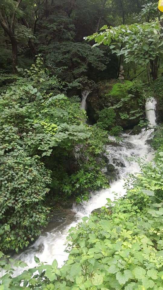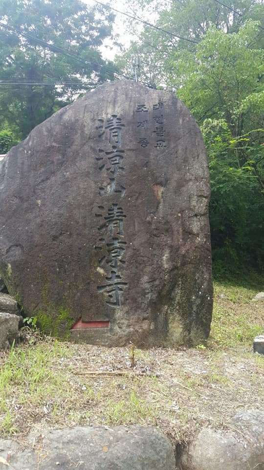 마침 전날 비가 와서 불어난 계곡물이 마치 폭포수가 쏟아지는 것처럼 장쾌한 물소리를 내며 흘러내리고 있어, 깎아지른듯 경사가 높은 산길이 언제쯤 끝날까 생각하며 하염없이 걸어서 오르는 동안 눈과 귀가 즐겁고 시원한 산바람을 쐬며 오를 수 있어 다행이었다. 절 바로 입구의 계곡물은 어찌나 세찬지 그 앞에 있으니 에어컨바람을 마주한 듯 했다. 땀 흘리며 30분쯤 오르고 오르니 드디어 삐죽이 보이는 청량사! 이리 반가울 수가~^^