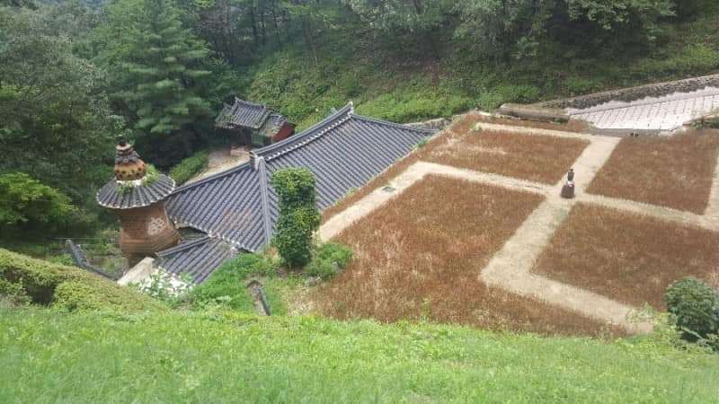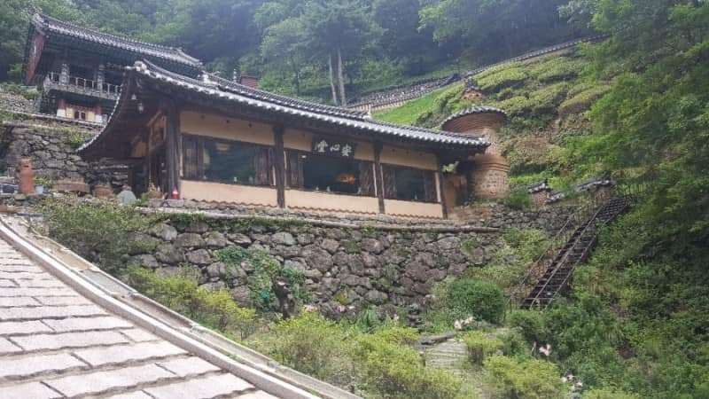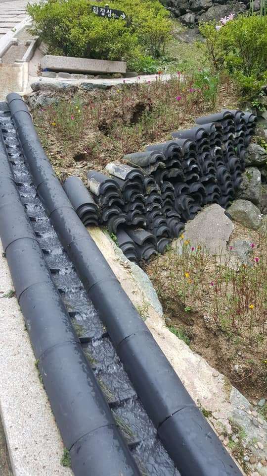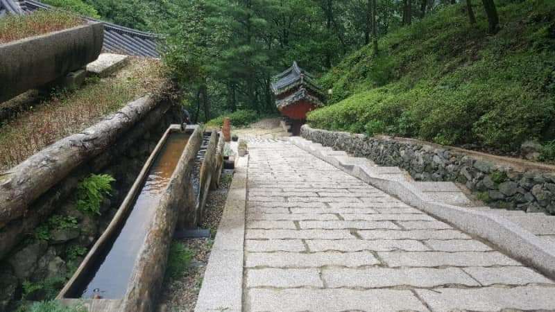 범종각과 전통다원인 안심당쪽으로 해서 내려오는 길엔 나무, 화강암, 기왓장을 활용한 다채로운 물받이가 있어서 기억에 남는다. 시원한 계곡바람을 맞으며 내려가는 길은 올라가며 흘린 땀과 함께 온갖 시름도 몸밖으로 빠져나간 듯 개운했다. 청량사에서 30분 가량 떨어진 곳이지만 장비를 갖춰야만 오를 수 있다는 하늘다리와 경관이 가장 아름답다는 응진전을 찾기 위해 다음에 한 번 더 와야겠다는 생각을 했다.