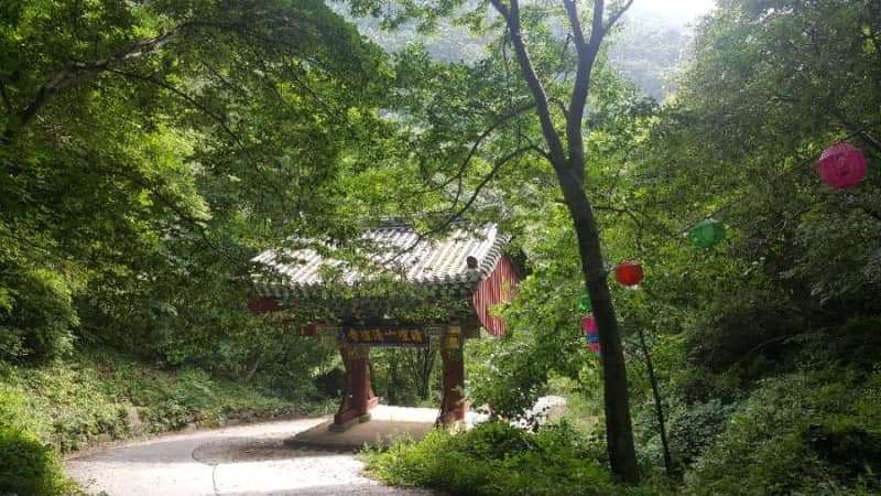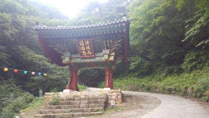 안동시내를 거쳐 안동호반을 돌고돌아 드디어 도착한 청량산 입구에선 발열체크를 하고 있었다. 가느다란 비단올처럼 떨어지는 청량폭포를 지나 절입구에 마련된 주차장에 차를 세우고 걸어오르기 시작했다. 이때만 해도 기나긴 고행이 시작되리라 생각도 못 했다. 청량산과 청량사 입구는 동일한데 입구에 등산안내와 함께 절대 차로 올라가지 말라고 안내판이 설치되어 있어 안내문대로 했건만 그렇게 가파른 길을 걸을 줄이야! 미리 알았다면 아마 지레 포기했을지도 모를 만큼 멋드러진 일주문 뒤로 가파른 산길이 계속되었다.