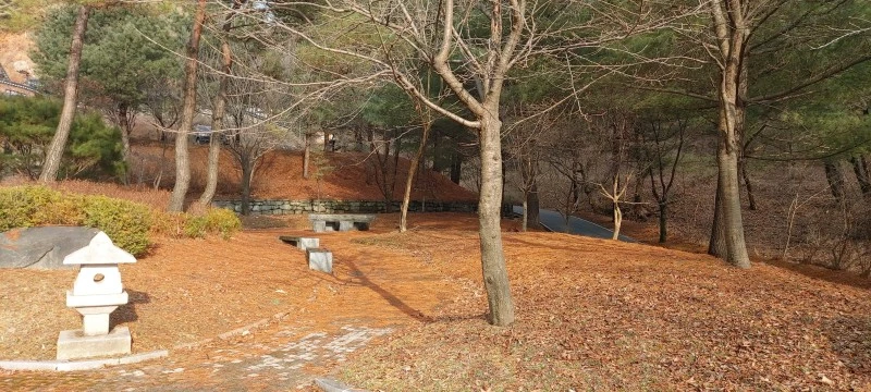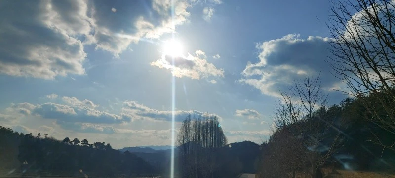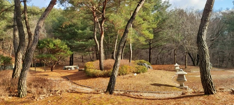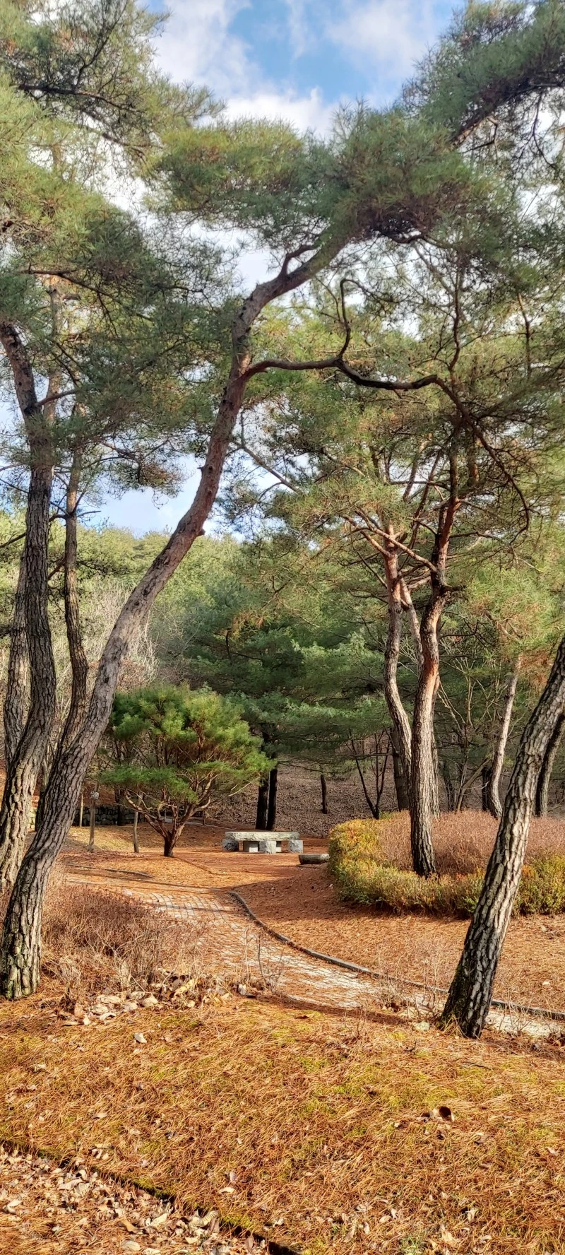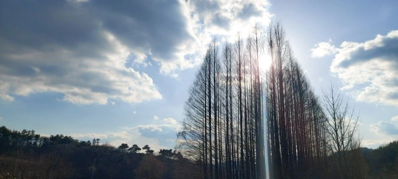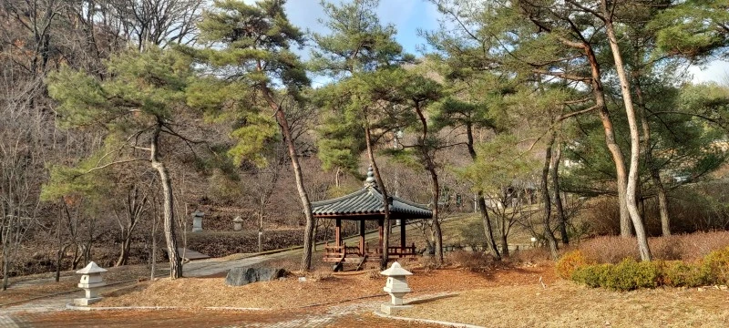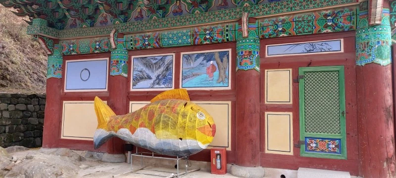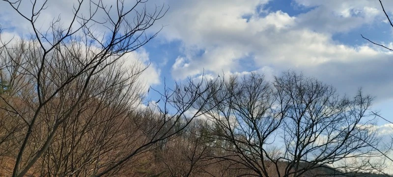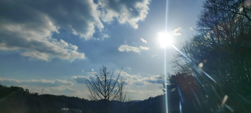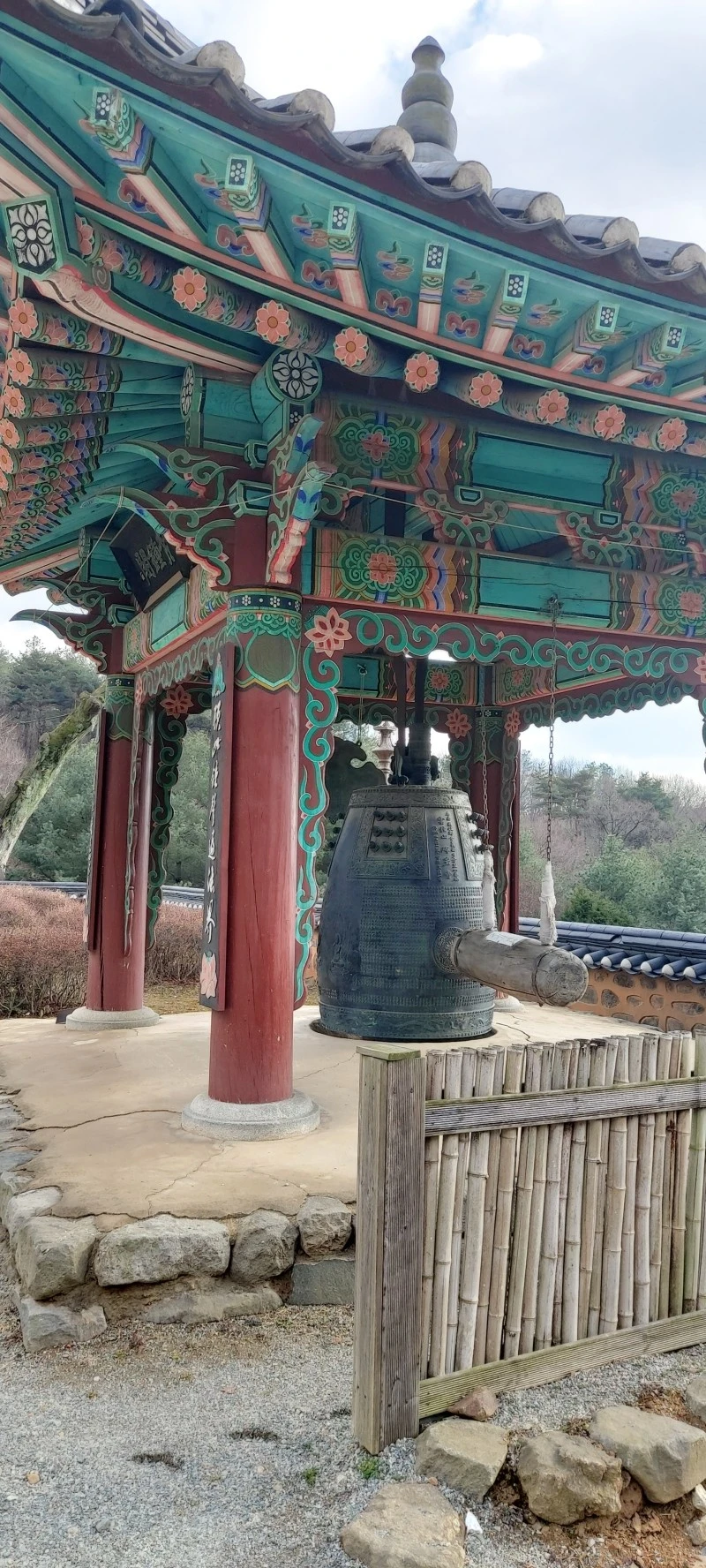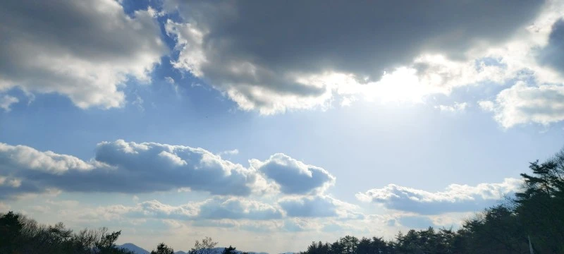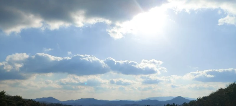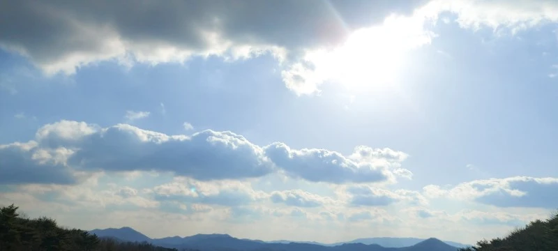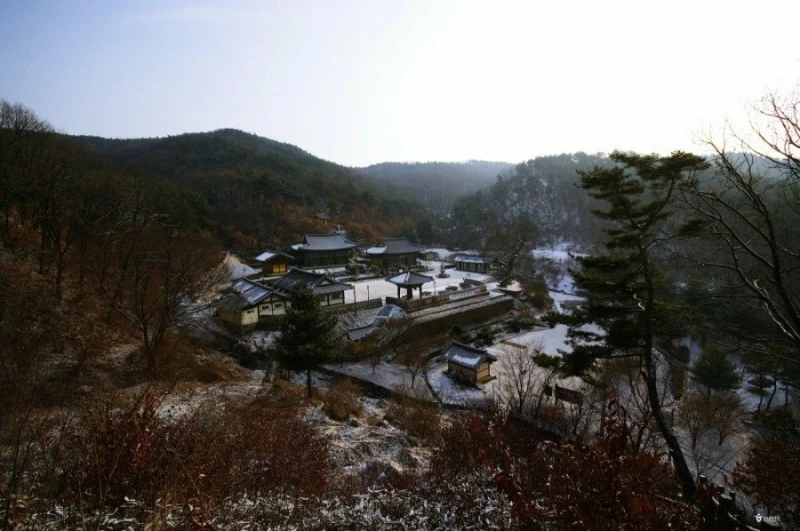느티나무 앞을 지나 절 마당에 서면 삼층석탑과 극락보전, 대웅전, 설선당과 명부전이 자리한 단촐한 사찰 경내가 한눈에 들어온다. 극락보전과 대웅전 사이 계단으로 올라가면 산신각이 나오는데, 산신각 앞에 서면 멀리까지 확 트인 전망이 보인다. 그 날은 하늘을 둥둥 떠다니는 구름 사이로 빛내림이 멋진 날이어서 더더욱 전망이 좋았다.