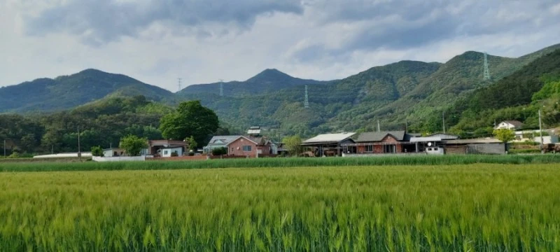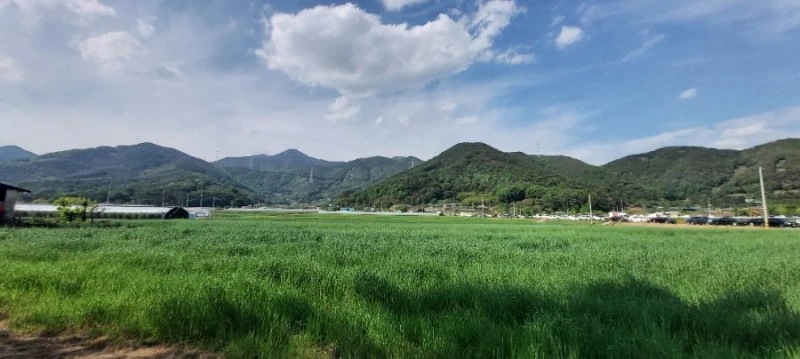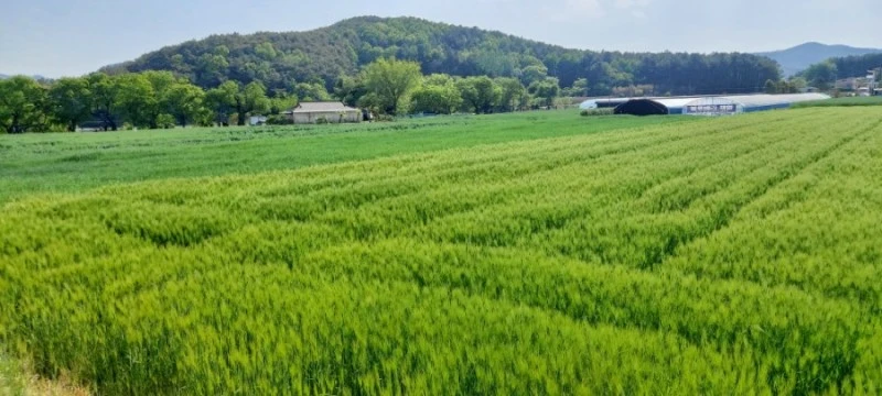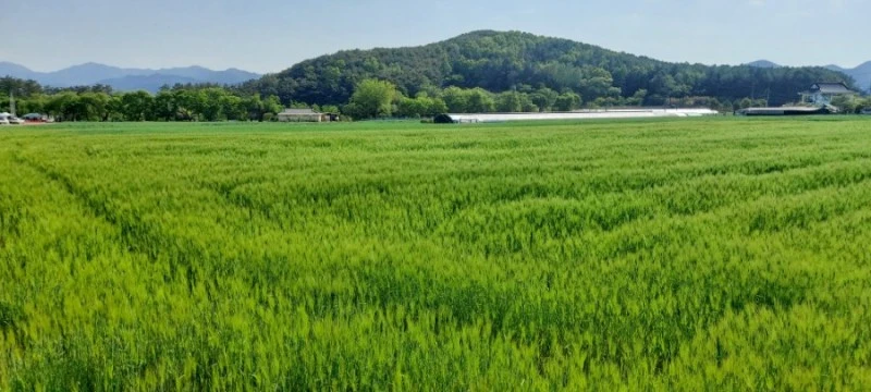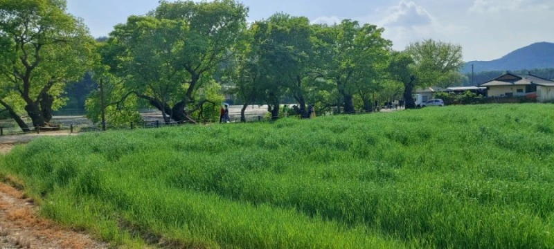 어찌어찌하여 위양못을 내려다보는 마을 위쪽 한적한 곳에 차를 대고, 위양못까지 부지런히 걸어내려갔다. 못에 이르는 길 옆으론 청보리밭이 초록빛으로 넘실대고 있어, 한창 자라나는 봄을 느낄 수 있었다.