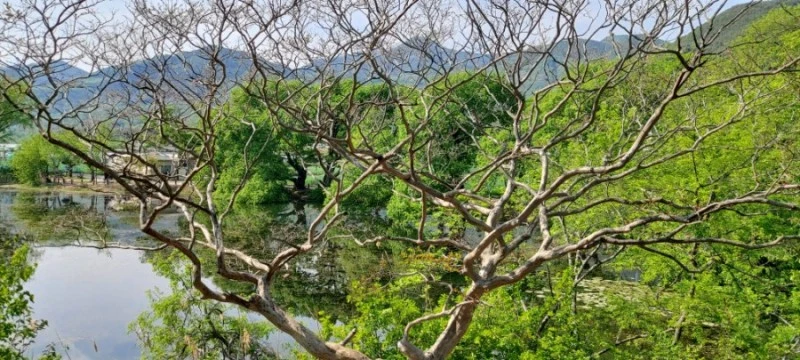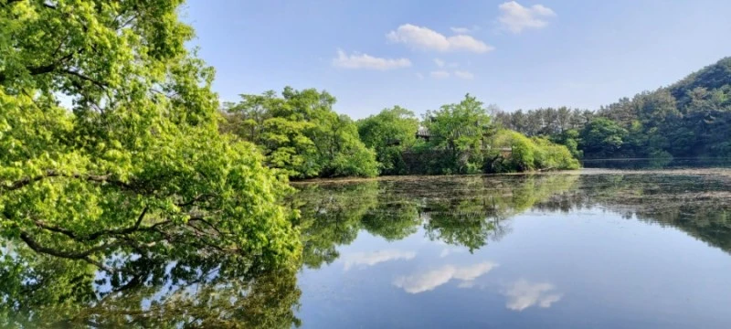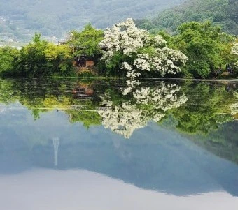그러나 이 두 가지만 빼면 위양못을 천천히 걸으며바라본 이팝꽃이 핀 완재정과 푸른 저수지가 보이는 풍경은 아름다웠다. 이팝꽃은 이제 피어나기 시작해, 위양못의 대표사진으로 꼽히는 아래와 같은 이팝꽃 만발한 모습이 나오려면 다음주쯤 되어야 하지 않을까 싶다.