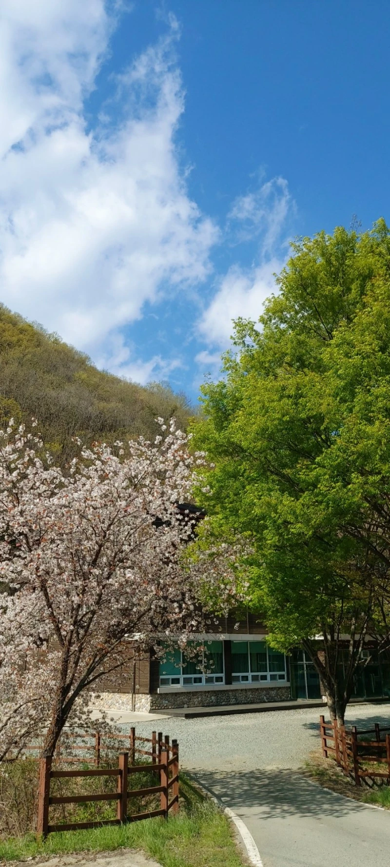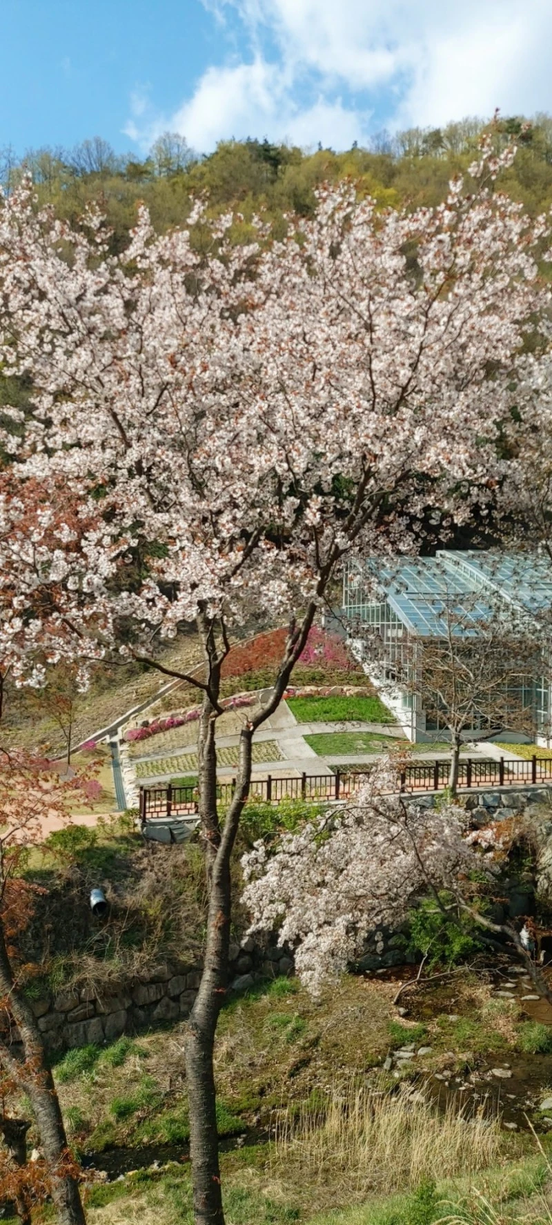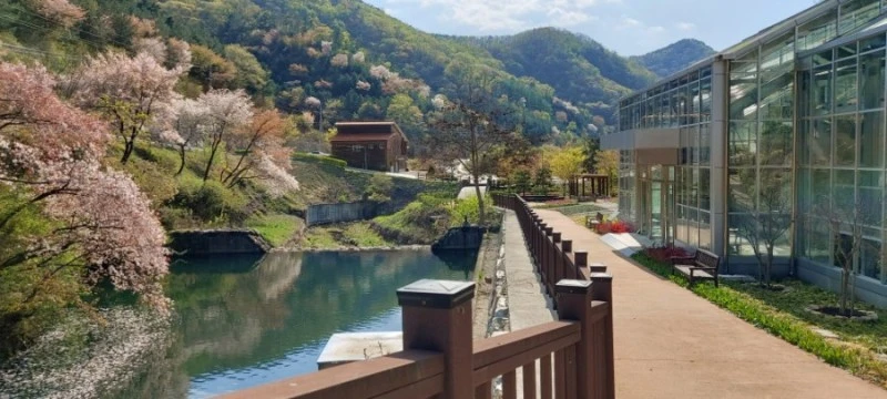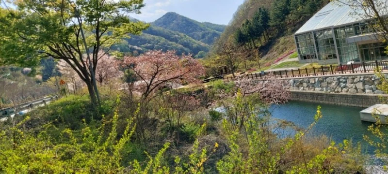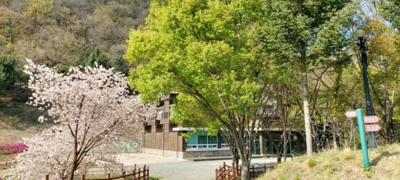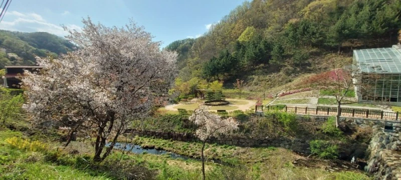4월 중순 날 좋은 일요일, 군위의 봄을 보고 싶어 올들어 세 번째로 군위를 찾았다. 어슬렁대추정원, 리틀포레스트 촬영지, 화본역, 화산산성과 억새바람길, 인각사, 일연공원 등등 전에 군위여행에 갔던 곳들을 다시 찾았지만 지난 두 번의 군위여행에서 중간에 차를 돌리느라 가지못한 곳이 바로 장곡자연휴양림이었다. 이곳은 군위를 삼국유사의 고장으로 만든, 일연이 삼국유사를 집필한 인각사에서 약 7km 거리이다. 팔공산순환로를 따라 경주 석굴암보다 조성연대가 빠른 군위삼존석굴, 100m가 넘는 인공폭포가 있는 일연공원, 위천의 시작점인 친환경 녹색댐 군위댐과 삼국유사면 행정복지센터를 지나쳐 낙동강의 지류인 위천을 막아서 만든 군위호를 빙 둘러 가다가, 용아교차로가 나오면 학성교가 놓인 오른쪽으로 꺾어 다리를 건너야 한다. 다리 너머 학성교차로 갈림길에서 장곡리/장곡자연휴양림이 있는 왼쪽으로 이정표를 따라 쭉 가면, 경북 군위군 삼국유사면 장곡휴양림길 195에 위치한 장곡자연휴양림 입구가 나온다. 1997년 7월에 개장했으며, 구역면적은 261만㎡이다. 1일 최대 수용인원은 500명, 최적 인원은 200명이다. 현재 코로나로 인해 이마저도 제한운영 중이며 군위군청에서 관리한다. 군위군에서 방가산 깊은 산 속 참나무천연림에 조성했다. 산등성이에는 소나무와 활엽수가 많으며, 가을철에는 도토리와 산송이가 많이 난다. 계곡을 따라 난 가파른 등산로를 오르면 옛날 골짜기에서 농민들이 농업용수로 쓰던 저수지인 용암지가 있다는데 요기까진 가보지 못했다. 휴양림에는 야영장, 산책로, 삼림욕장, 전망대, 숲속의 집 등 편의시설과 체력단련실, 민속놀이터, 어린이놀이터 등과 야외교실, 임간수련장, 자연관찰원, 전시관 등의 교육 시설을 비롯해 여러 휴양시설이 갖추어져 있다. 특이했던 게 유리돔으로 된 온실이 있다는 사실이다. 관리실을 지나서 조금 올라가다보면 왼쪽 산림휴양관 아래에 있는데, 우거진 초록나무와 풀 속에서 졸졸졸 흐르는 인공개울의 모습이 참 보기 좋았다. 원래는 휴양림 시설을 예약한 사람들만 입장이 가능하다는 안내판이 있어서 입구에 차를 멈추고 주변 경관 사진을 찍고 돌아올 생각이었다. 아직 산벚꽃이 한창이고, 개나리도 피어있고, 하늘은 파랗고 해서 그냥 지나치기 힘든 풍경이었다. 그런데 한동안 사진을 찍고 주차된 차로 돌아와서 보니, 입구에서 특별히 제지를 하지 않는 것 같았다. (세종시 금강자연휴양림은 입구부터 차단봉을 설치해놓고 예약자 확인 뒤 입장가능하다. 쫌 마음에 안 든다.) 그래서 용기를 내어 한 번 안으로 쑤욱 들어갔다. 군위를 자주 올 수 있는 것도 아닌데, 휴양림 안이 무척 궁금했다. 그냥 한 번 둘러보는 것뿐인데... 예약 안 했음 나가라고 하면 그냥 뭐 나가지~ 하고 들어갔는데 다행히도 관리사무소에서 막지 않았다. 산림휴양관과 유리온실이 보이는 곳, 숲속의 집으로 들어가기 직전 공터에 차를 세워두고 구경에 나섰다. 일요일 오후 4시가 넘은 늦은 시간이라 일반인 이용객은 안 보이고, 휴양림을 관리하는 분들만 눈에 띄었다. 아름다운 풍경에 넋놓고 사진을 찍고 있자니, 차 한 대가 관리사무실에서 나와 내 앞에 멈추길래 그저 웃으며 인사를 드렸더니만, 관리인도 웃으며 답인사를 하시곤 가던 길을 가셨다. 덕분에 쫄았던 마음이 풀어지며 한 시간 가량 더 머물면서 휴양림 안을 거닐었다. 가을하늘처럼 맑디 맑은 하늘 아래, 연분홍 벚꽃잎이 흩날리며 초록 상록수들과 연두빛 새순이 오르는 낙엽수들이 울창한 산책길을 걷는 동안 난 완벽하게 행복했다. 게다가 아무도 마주치지 않아 마스크를 벗고, 상쾌한 공기를 마음껏 들이마시며 숲길을 걸었다. 한 시간 동안 마치 무릉도원을 거닌 듯한 여유와 아름다움을 선사한 장곡자연휴양림. 다음엔 숲속의 집을 예약해서 하룻밤 머물며 더욱 오래 머물고 싶은 그런 곳이었다. 군위여행을 1박 2일로 계획하시는 분이 있다면 요기 장곡자연휴양림 숲속의 집을 이용해보시길 추천한다. 작년에 코로나가 유행한 이후 코로나-19 확산방지 및 감염예방을 위하여 휴양림 숙박시설을 제한 운영중이다. 숲속의 집 예약을 하기 위해 알아낸 정보를 올려본다. 기 간 : 2020. 12. 14(월) ~ 별도 해제시까지 내 용 : 숙박시설 30% 수준 운영 ※ 5인이상 잡합금지(4인이하 이용인원 조정 및 취소조치) ※ 휴양림 방문시 꼭 마스크 착용 발열, 호흡기 증상이 있거나 최근 14일 이내 해외여행을 한 경우 휴양림 이용 자제를 당부하고 있다. 숲속의 집 이용 후기는 욜로허당냥이님이 자세히 소개해놓은 글이 있어 아래에 링크한다. (숲속의 집은 4인 기준 통나무집이 1박 2일에 6만원. 휴양림 예약은 한 달 전에만 가능한데, 이 글을 쓴 4월 23일 기준으로 5월 23일부터 일주일 가량 예약이 가능하다고 뜬다. 아래 예약용 홈페이지 참조) * 문의 및 안내 관리사무소 054-380-6317, 공원휴양림 054-380-6313 * 예약용 홈페이지 https://www.foresttrip.go.kr/indvz/main.do?hmpgId=ID02030064