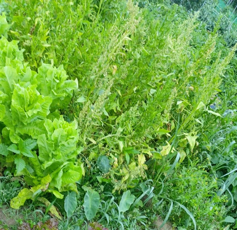 초봄에 씨앗으로 심었던 시금치는 동이 올라서 이제 씨앗을 받을 만큼 무성했고, 같이 심었던 상추도 연한 시기를 지나 키가 쑤욱 자랐다. 지인이 주셔서 30주 가량 심었던 대파는 하나 빼고 다 말라 죽었나 안 보이고, 감자는 풀들과 싸우며 억척스레 버티는 중, 텃밭이웃에게서 나눔받아 심은 토란이 시금치와 상추 그늘 속에서 앙증맞게 자라고 있었다.