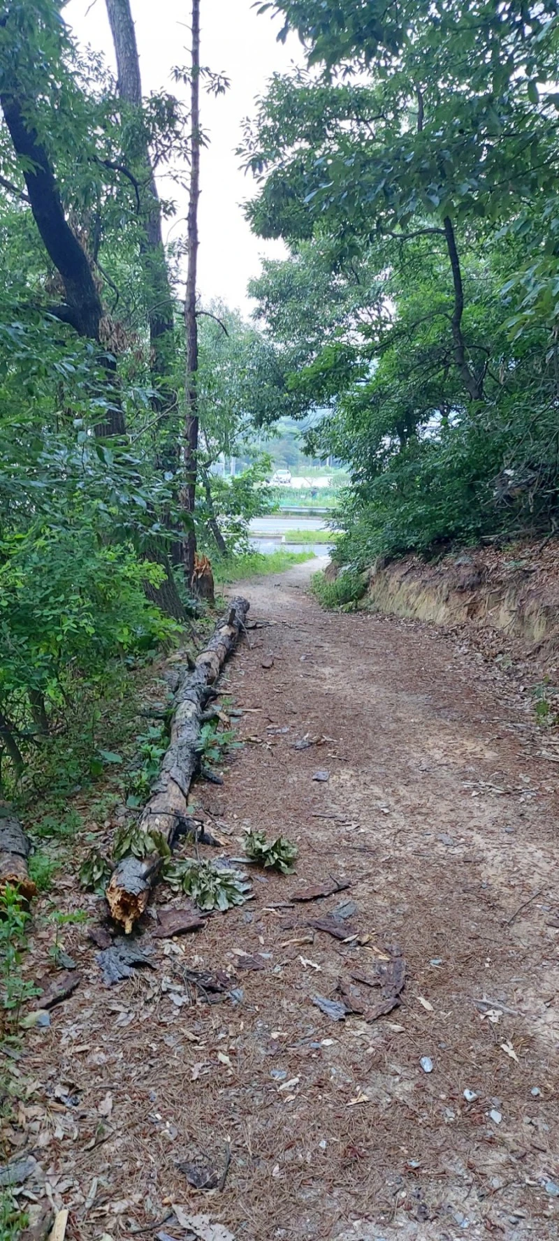 텃밭 가는 길은 언제나 좋다. 산딸나무 상아빛 꽃이 아직 활짝 피어있고, 호랑이소나무숲 속의 보리수 열매가 빨갛게 익어가고, 길가에 늘어선 벚나무의 버찌는 까맣게 익어서 후두둑 길가에 떨어져있었다. 텃밭 옆 오솔길엔 고사한 소나무 한 그루가 중동이 끊어진 채 쓰러져 길게 누워있어서 한달 전 어머님이 쓰러지셨던 순간을 떠올리게 했다.