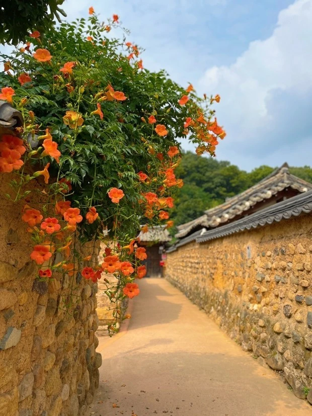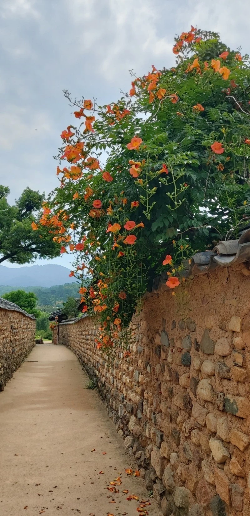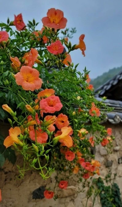 달성 남평 문씨 본리 세거 지 담장에 핀 능소화