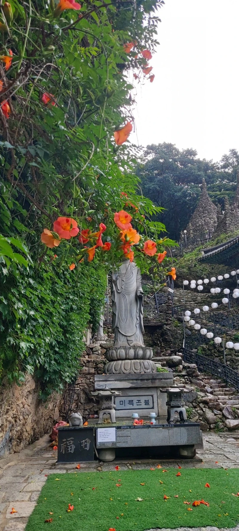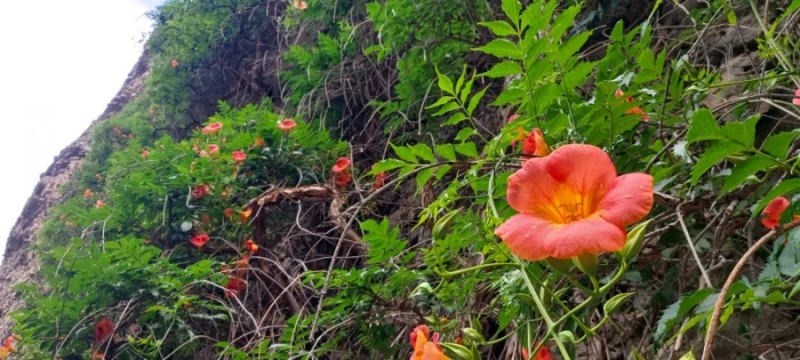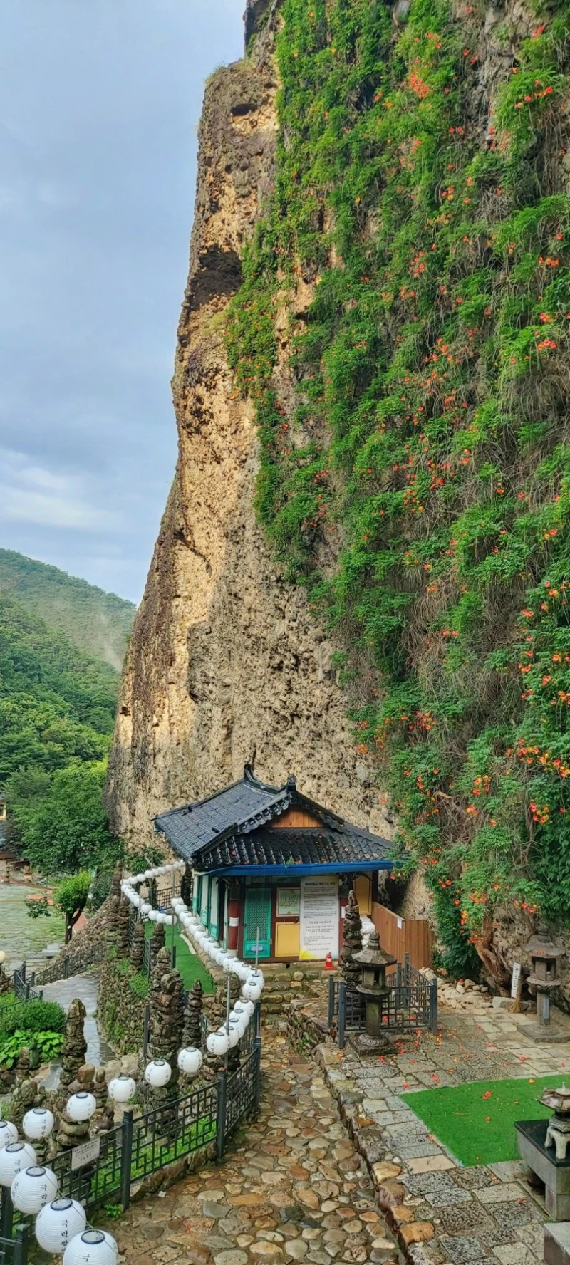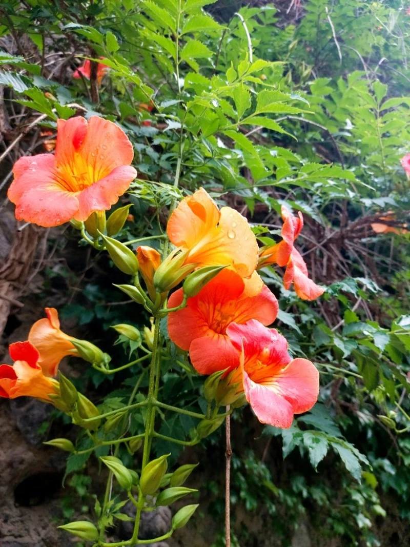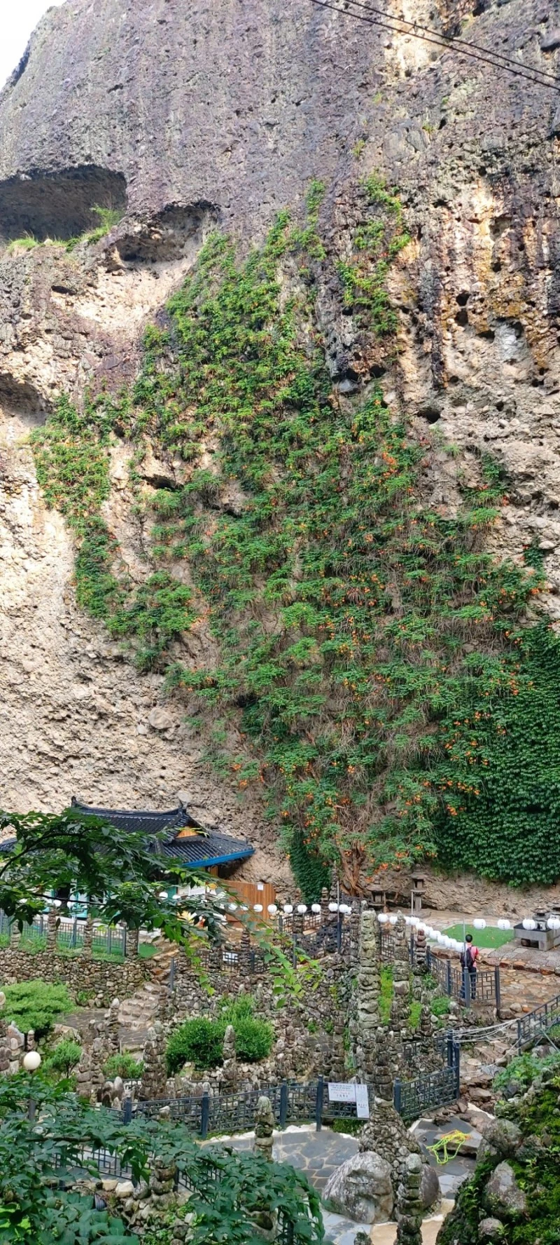 비가 많이 내려 능소화가 많이 떨어졌다니 만개한 풍경을 못 봐 좀 아쉽긴 했으나 그래도 활짝 핀 주홍빛 능소화를 실컷 볼 수 있었다. 벼랑에선 여전히 비가 후두둑 후두둑 떨어지는데, 숲사이로 해가 비치면서 파란 하늘이 드러나는 모습도 가히 장관이었다.