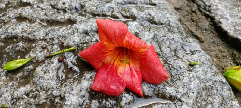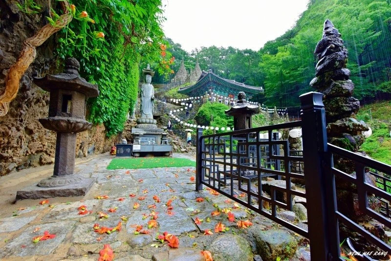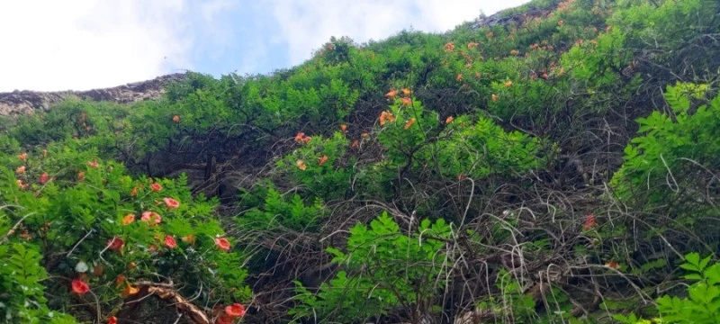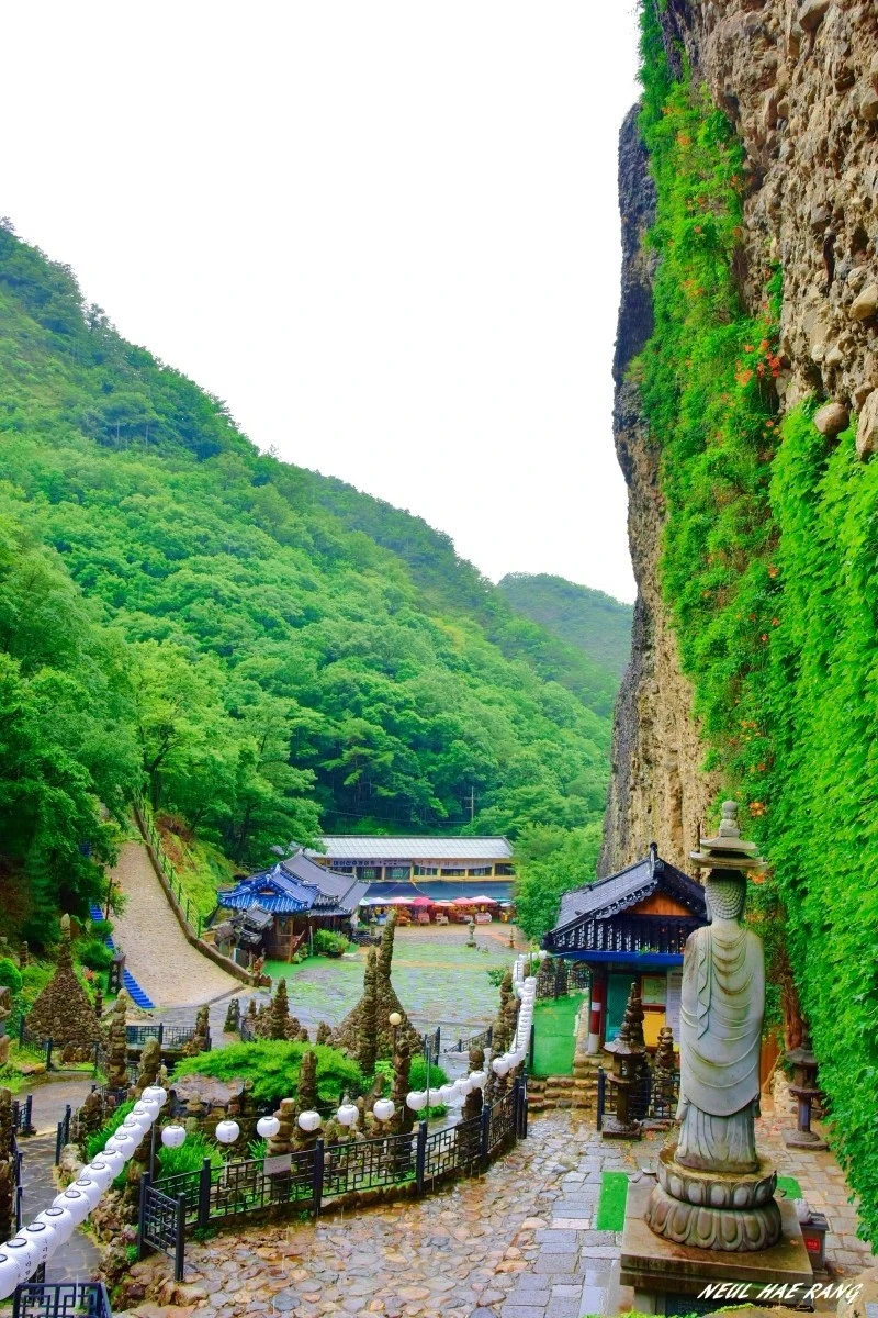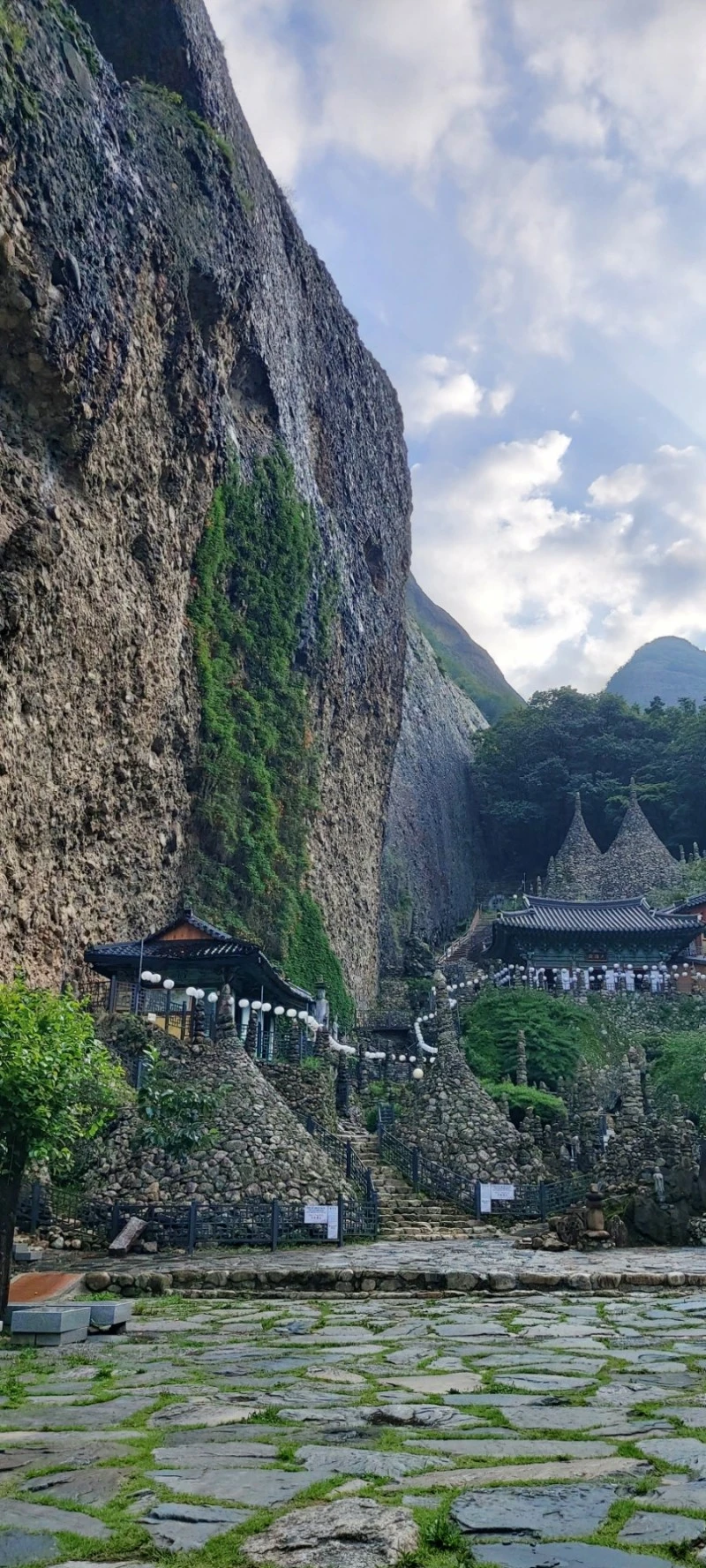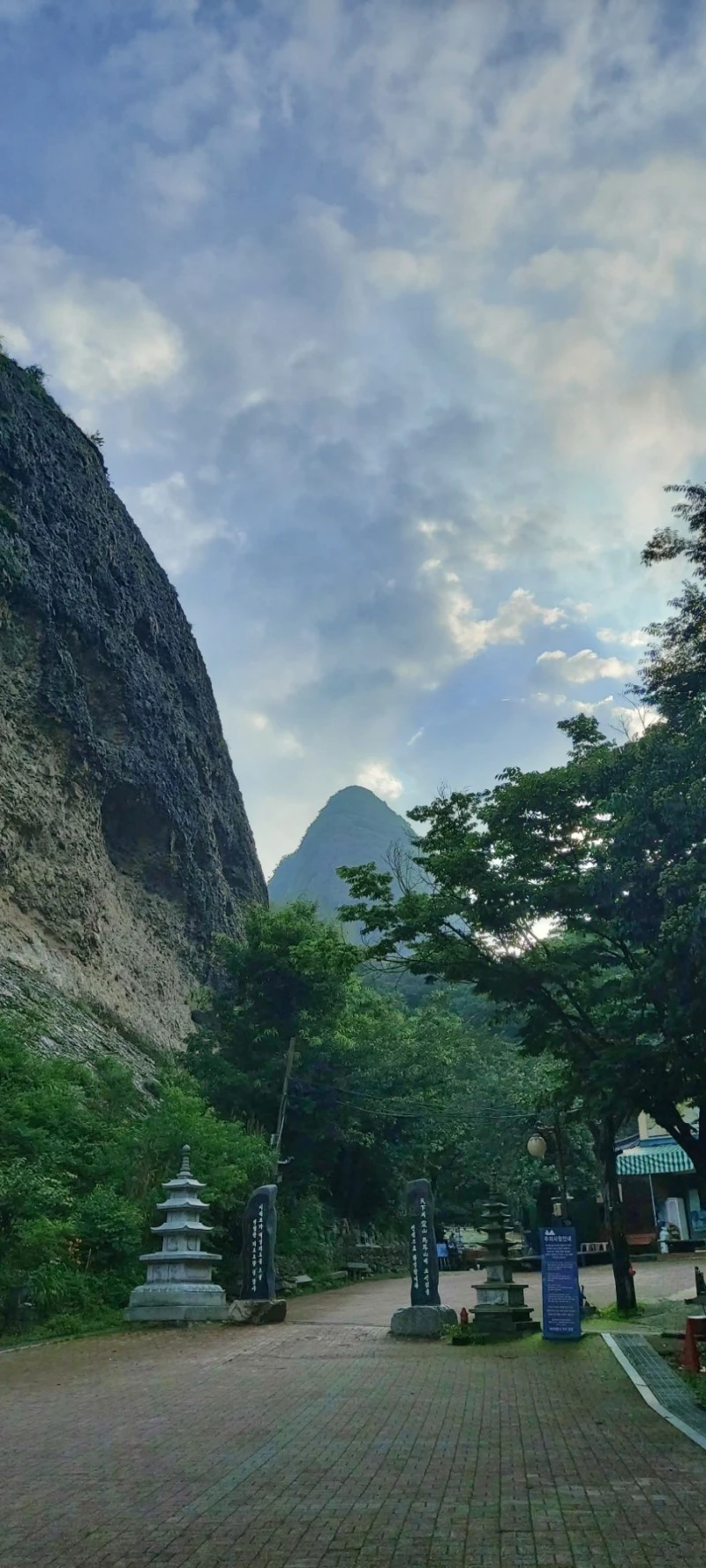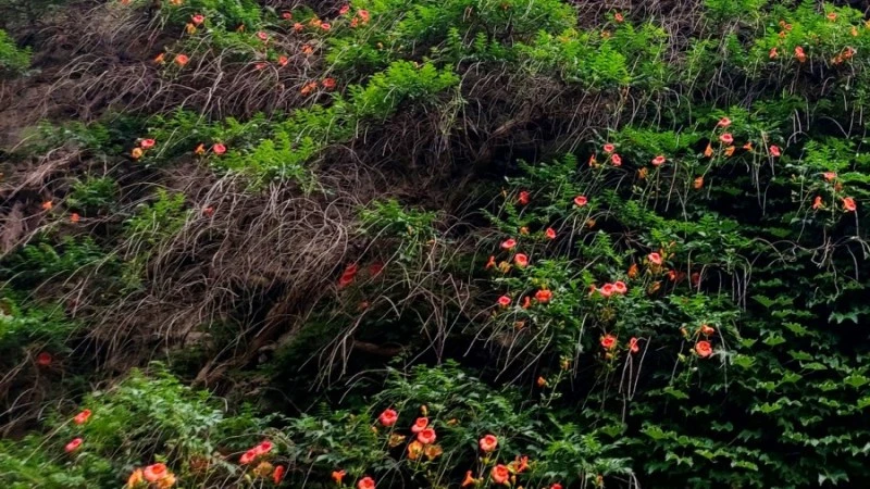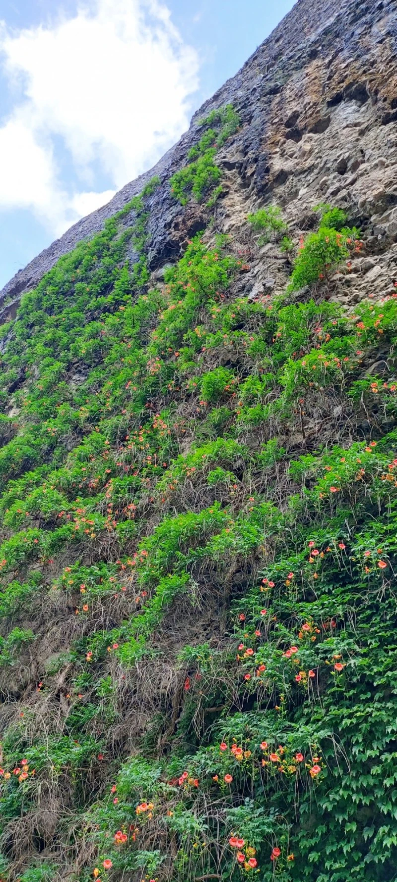 비가 많이 내려 능소화가 많이 떨어졌다니 만개한 풍경을 못 봐 좀 아쉽긴 했으나 그래도 활짝 핀 주홍빛 능소화를 실컷 볼 수 있었다. 벼랑에선 여전히 비가 후두둑 후두둑 떨어지는데, 숲사이로 해가 비치면서 파란 하늘이 드러나는 모습도 가히 장관이었다.