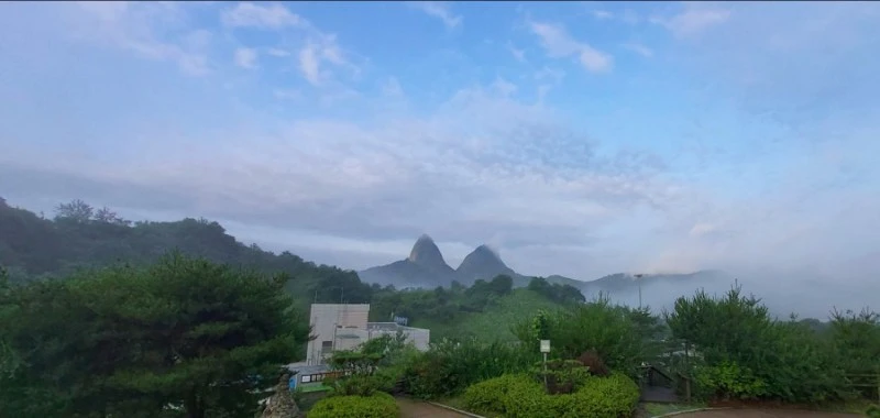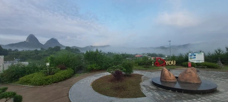 가다가 배에서 신호가 오는 바람에 마이산휴게소에서 잠시 쉬었는데, 덕분에 휴게소 뒤편 동산에 마련된 마이정에서 구름에 싸인 마이산 풍경을 볼 수 있었다.