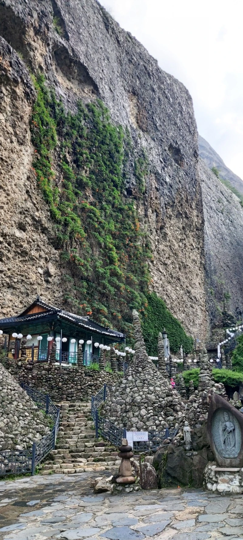 재촉하는 남편을 따라 차 타고 탑사까지 올라가며 보니(일반적으론 주차장에 차를 대고 걸어올라가야 하지만, 8시 매표하기 전 이른 시간엔 차를 타고 갈 수 있다) 여기저기 비가 많이 내린 흔적들이 보인다. 계곡물길을 따라 데크를 만드느라 공사중인 모습도 보이고.