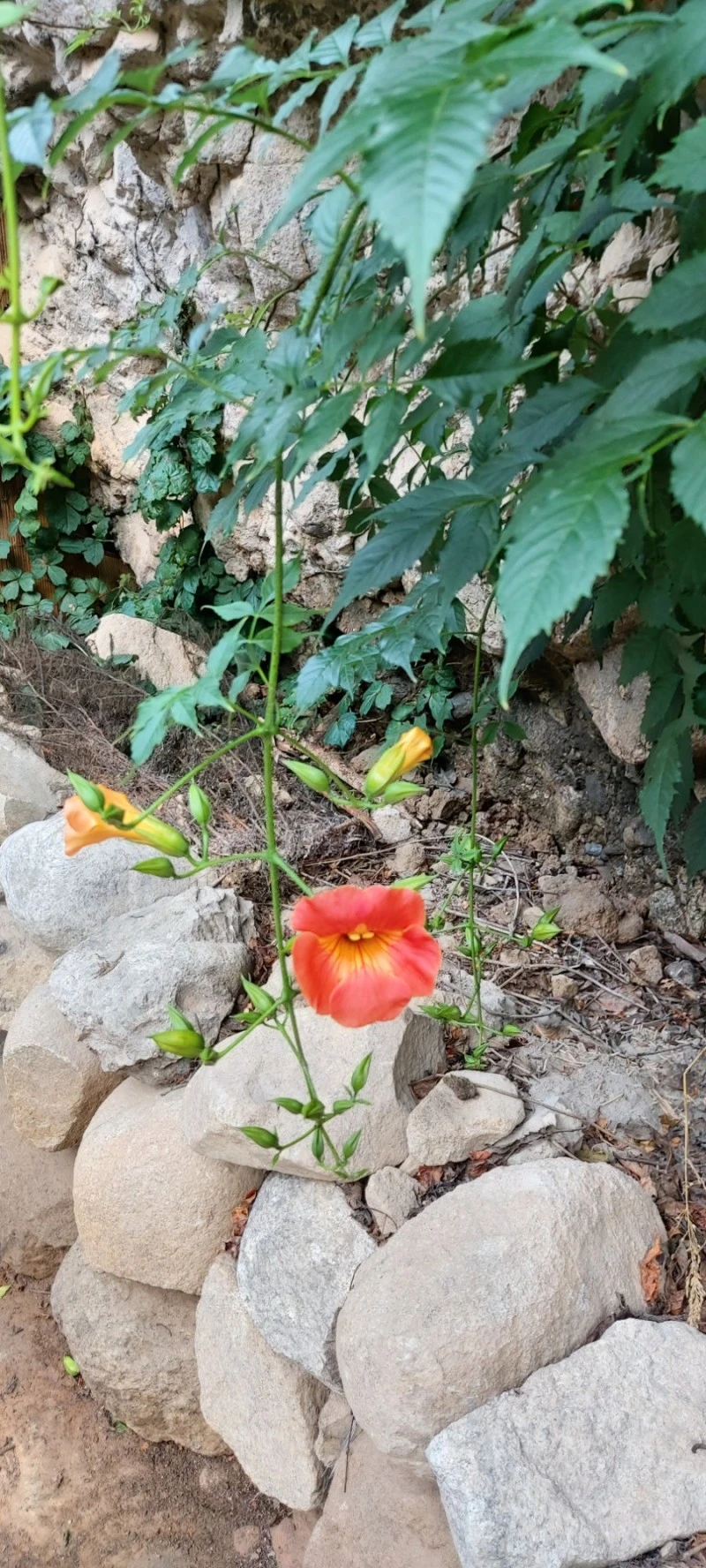 1985년 심어서 올해로 36년이 된 고목에서 피어나는 탓이기도 하다.(2015년 법보신문에 소개된 바로는 35년 전 어느날 영신각 뒤 암벽에 피어나 눈길을 끌기 시작했다고 하니 이에 따르면 41년이 됐고, 내가 처음 이 탑사 능소화를 알게 된 작년엔 45년 된 나무로 소개되었더랬다. 무엇이 맞는 것일까?)