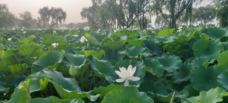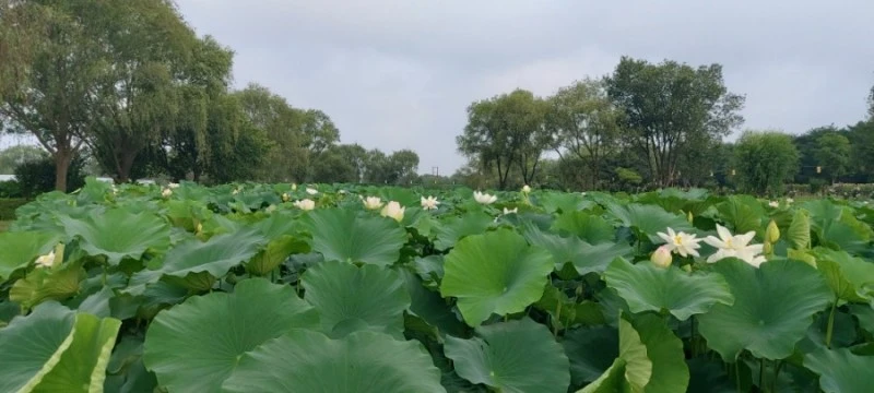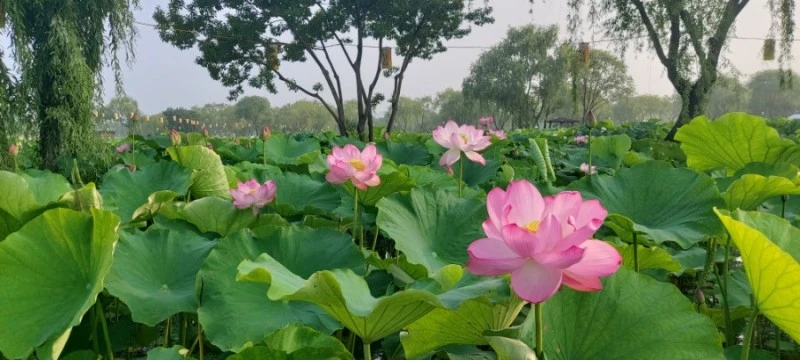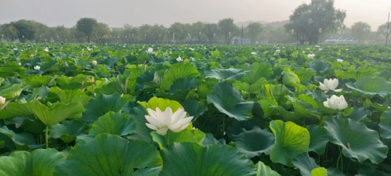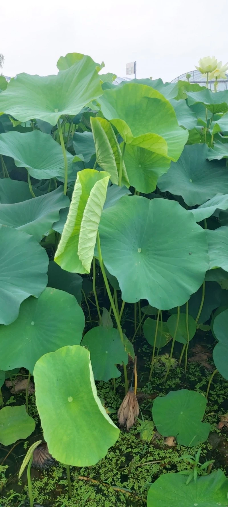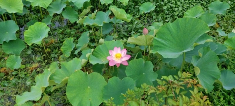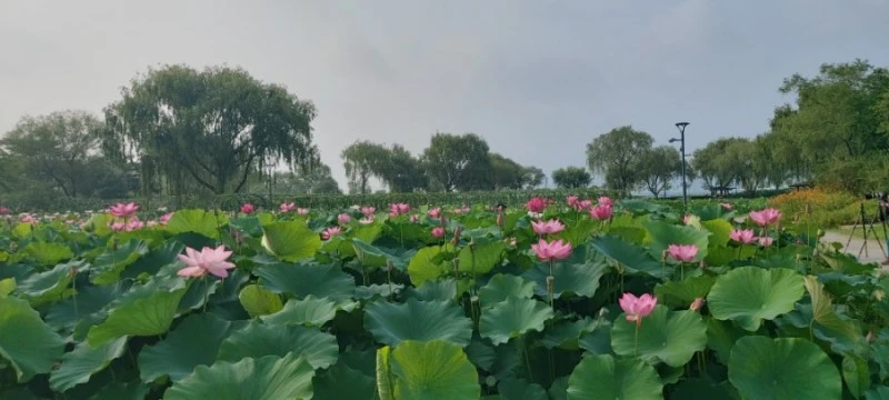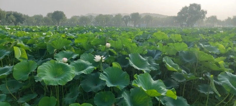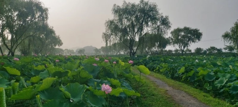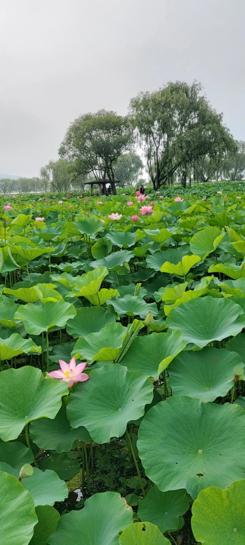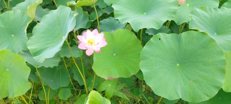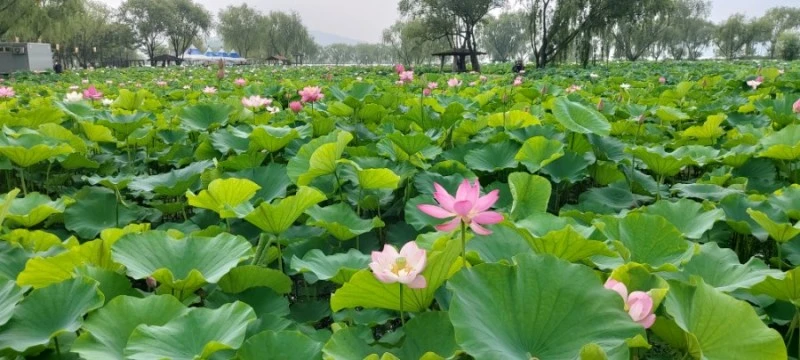 연꽃이 이제야 뜨문뜨문 피기 시작했다.