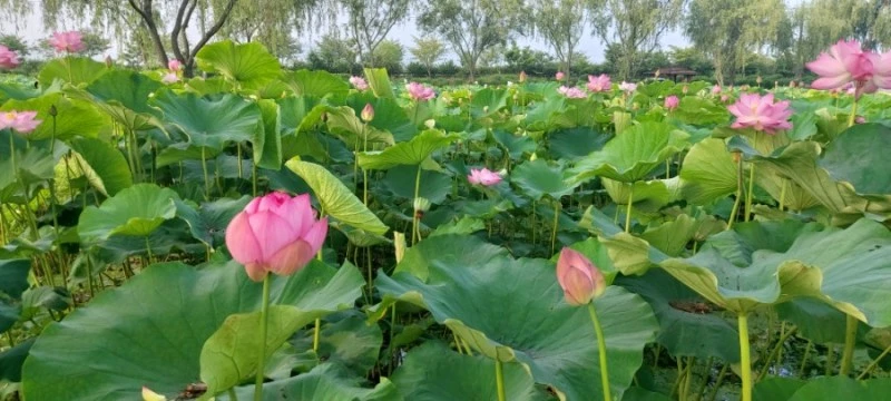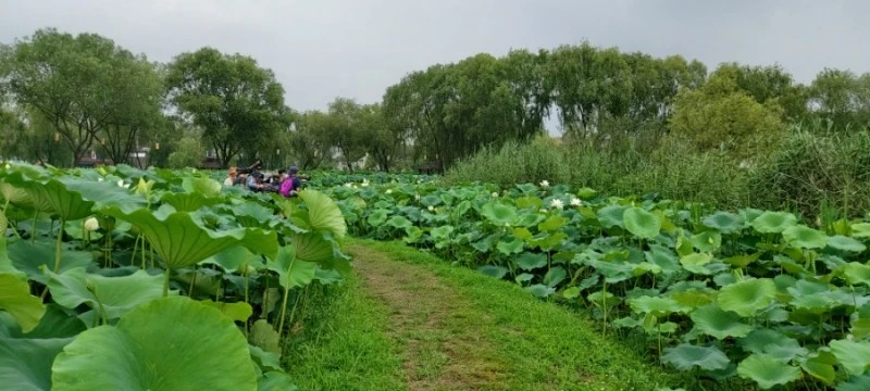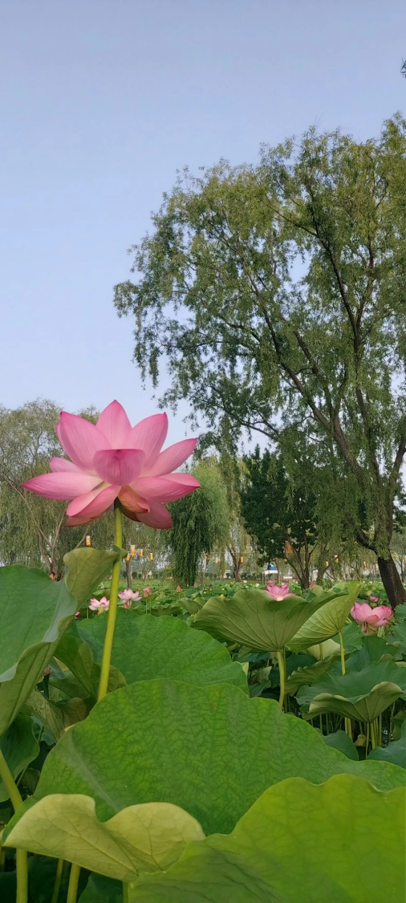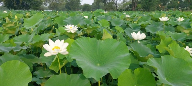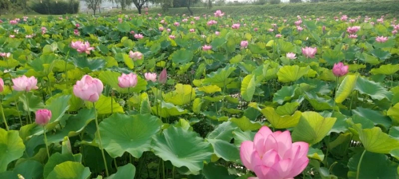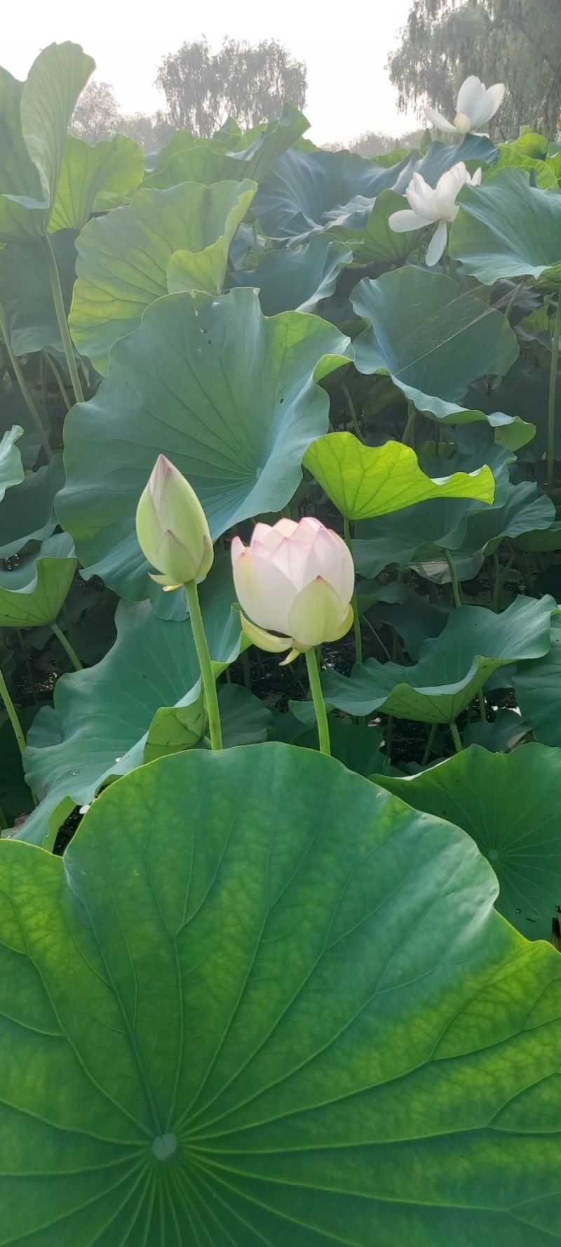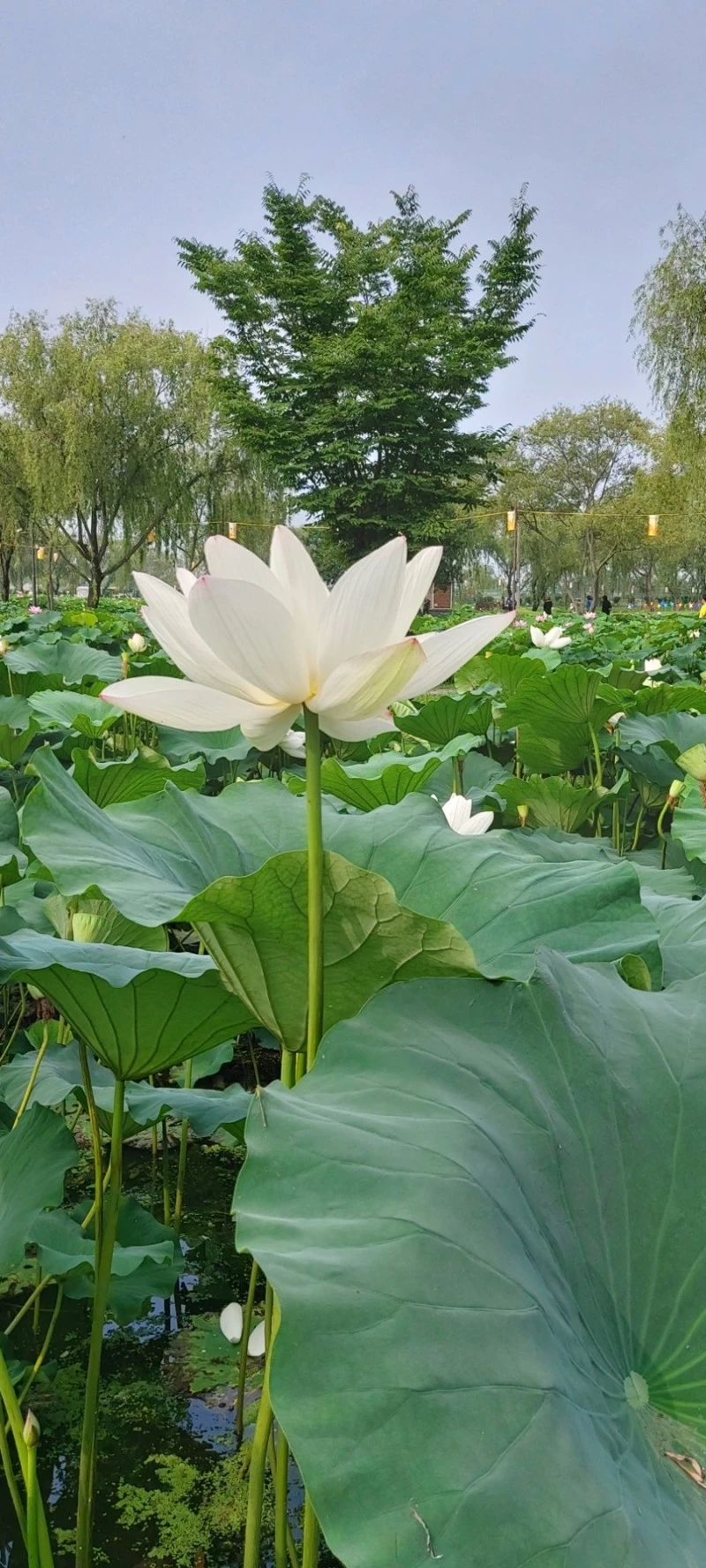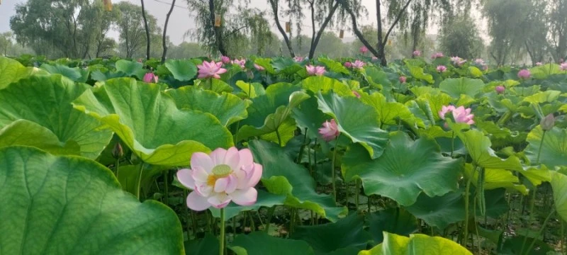 연꽃이 이제야 뜨문뜨문 피기 시작했다.