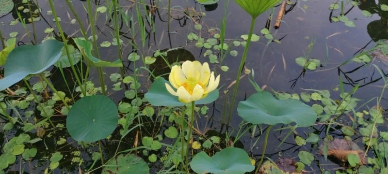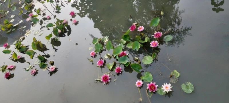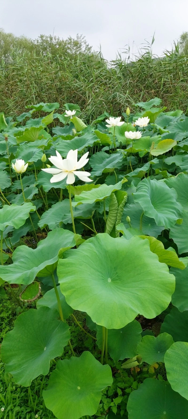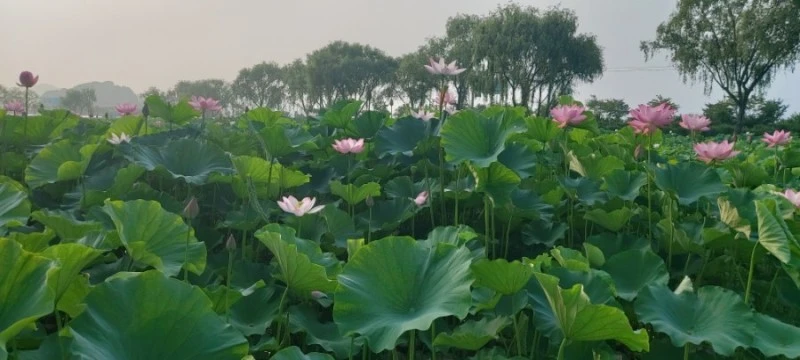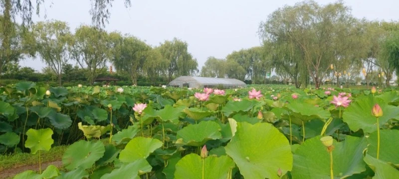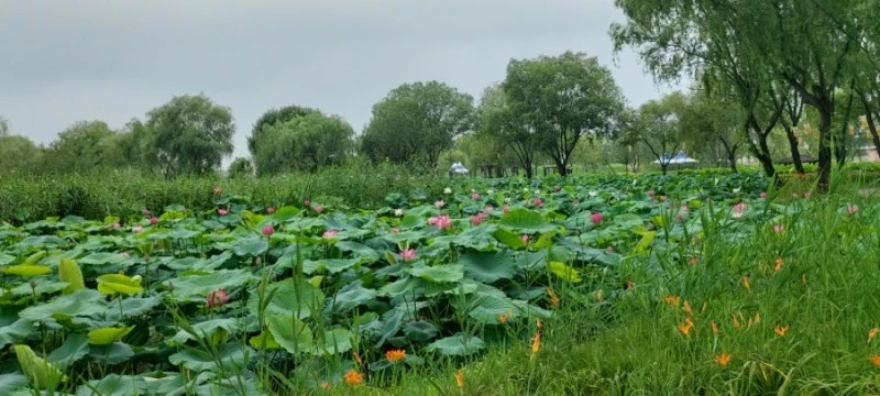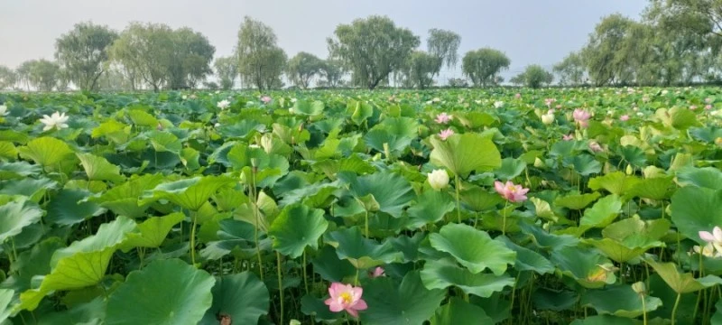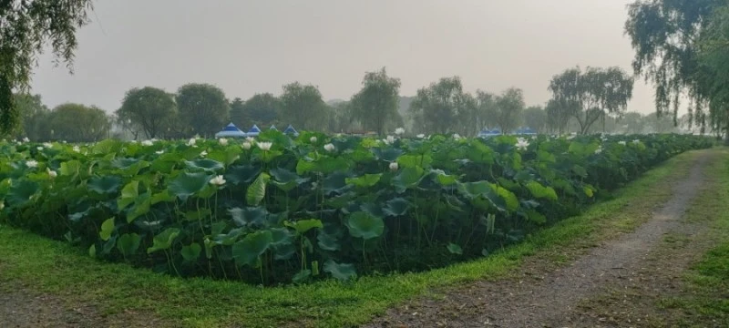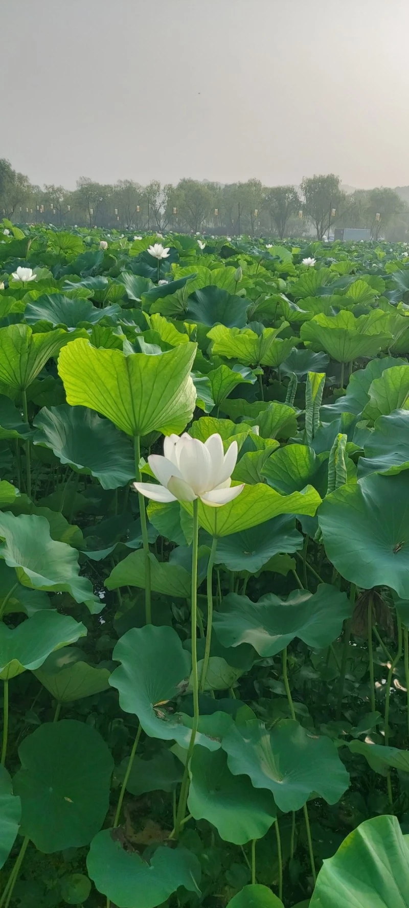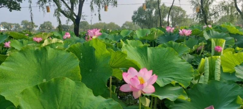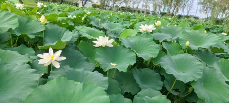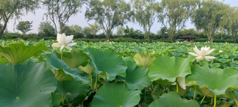 연꽃이 이제야 뜨문뜨문 피기 시작했다.