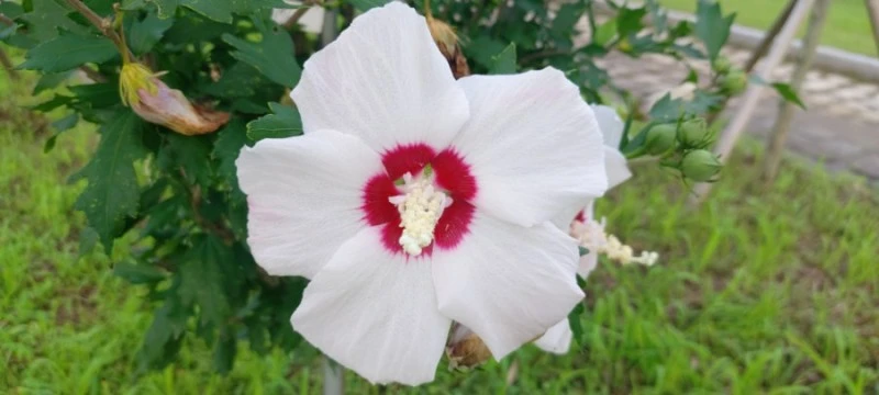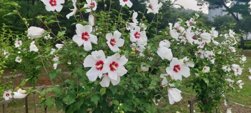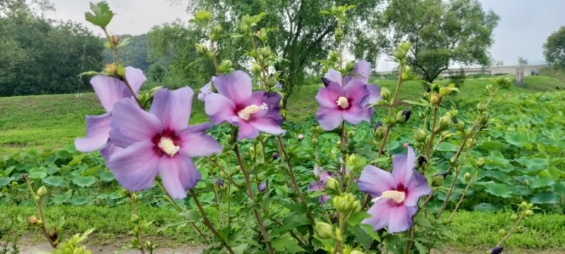 우리나라 대표 무궁화들이 종류별로 설명판과 함께 심어져있었는데 아직은 나무가 어려서 꽃이 풍성하게 피진 않았다. 지난 번에 청주 미동산 수목원 갔을 때, 그곳에 잘 꾸며진 '무궁화원'을 제대로 둘러보지 못한 아쉬움이 남아 궁남지의 무궁화동산을 열심히 봤는데 아무래도 부족하다. 조만간 미동산수목원에 무궁화 보러 다시 가야겠다.