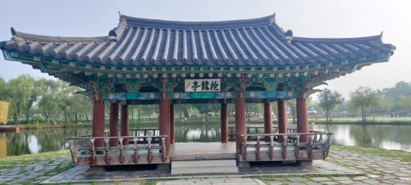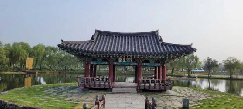 궁남지의 대표건축물인 포룡정을 한 바퀴 둘러본 뒤