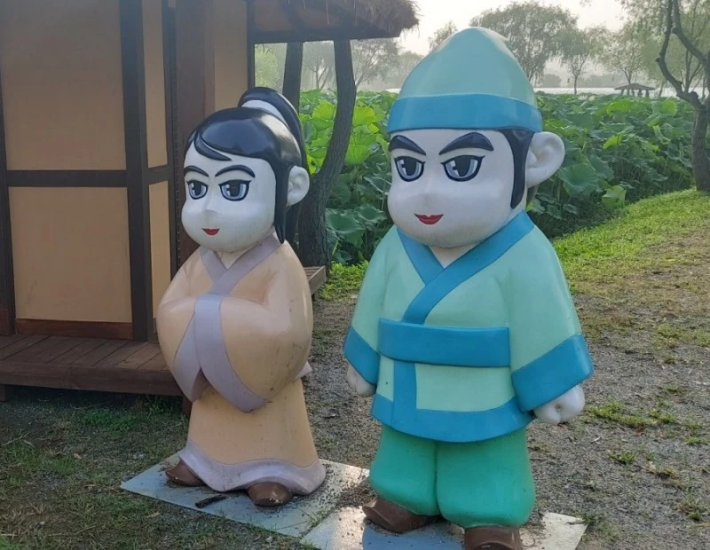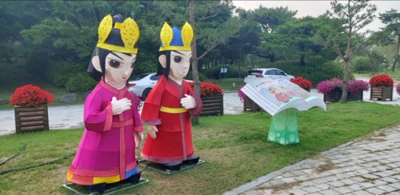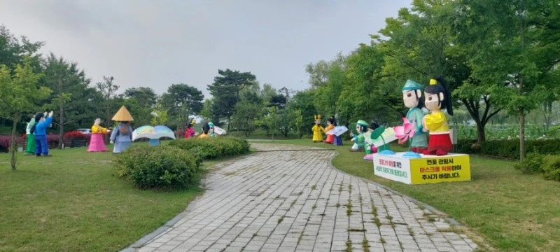 축제 조형물인 서동과 선화공주가 마스크를 쓰고 있는 모습이 재밌어서 찍고 있는데, 남편이 맞은편에 있는 마스크 안 쓴 서동의 눈빛이 어째 예사롭지 않다고, 밤에 보면 쩜 무섭겠다고 그런다. 그런가? 아래 사진 보시고 판단을~^^