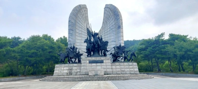 오천결사대 출정상은 높이 8.8m로 계백장군이 5천 결사대를 이끌고 황산벌 전투에서 4전 4승하는 충정의 기상과 모습을 기마와 보병의 군상으로 표현하여 백제의 문 전면에 대치시켜 충혼탑의 절정을 표현하였다.