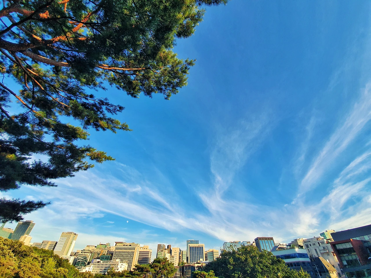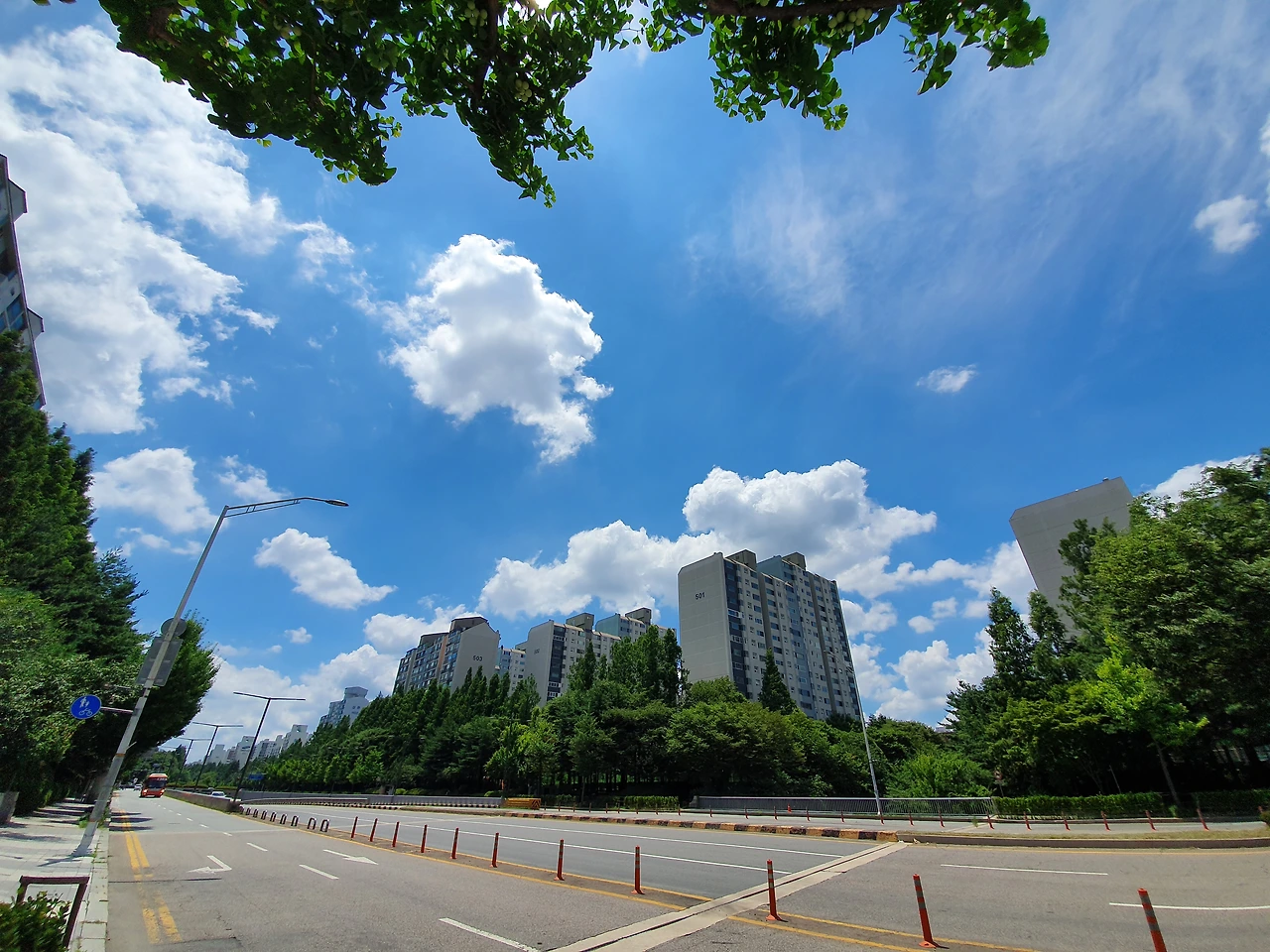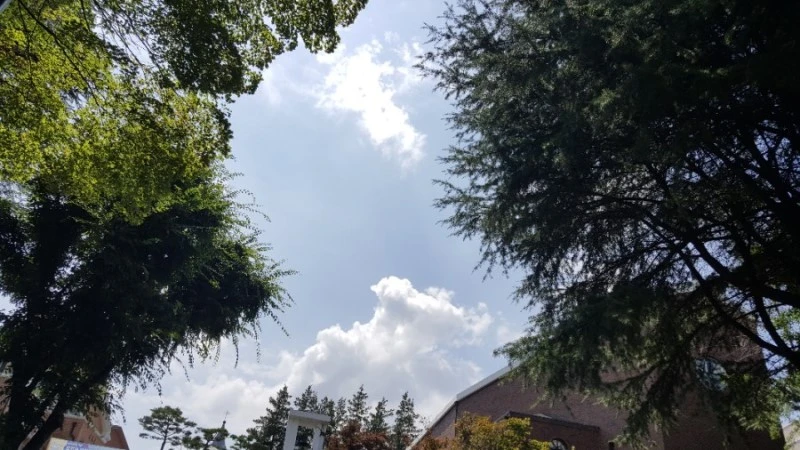 그 중에서도 여름에 점심시간이나 저녁시간 때 1층 현관 필로티 아래 앉아서 바라보는 하늘은 정말 여유롭고 멋졌다.