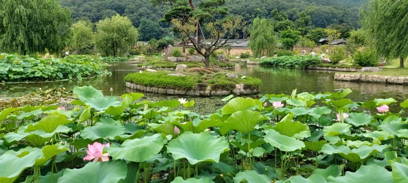 그리고 연꽃과 다양한 꽃들이 활짝 핀 마을 앞 연못의 풍경도 빼놓을 수 없는 아름다움이 있어서 여름이 가기 전에 꼭 소개하고 싶었다.