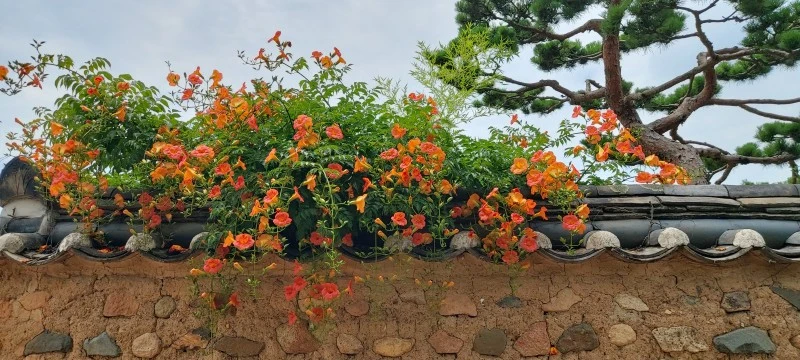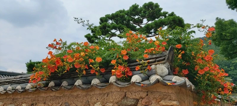 아이유가 출연한 드라마 '달의 연인 보보경심려'의 주요촬영지가 됐던 한옥은 여전히 코로나로 인해 문을 닫아걸고 있어 아쉬웠지만 집 옆에 쭉 뻗은 소나무 보호수들과 주변 담장에 늘어진 능소화로 아쉬움을 달랠 수 있었다.
