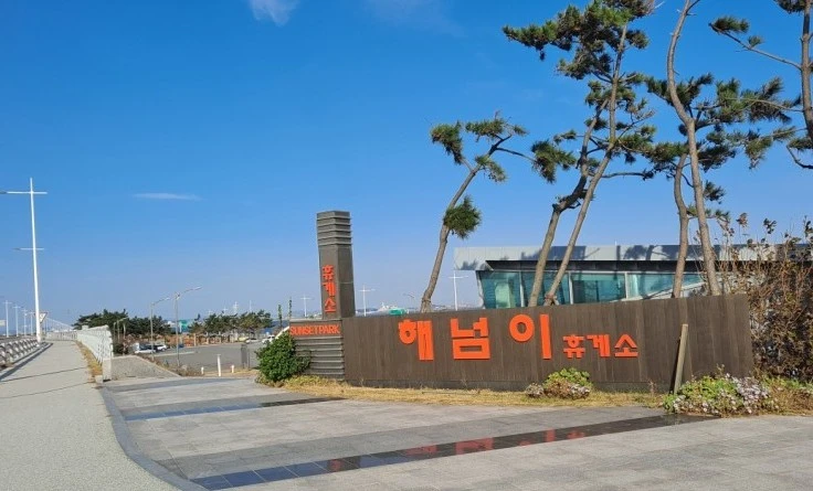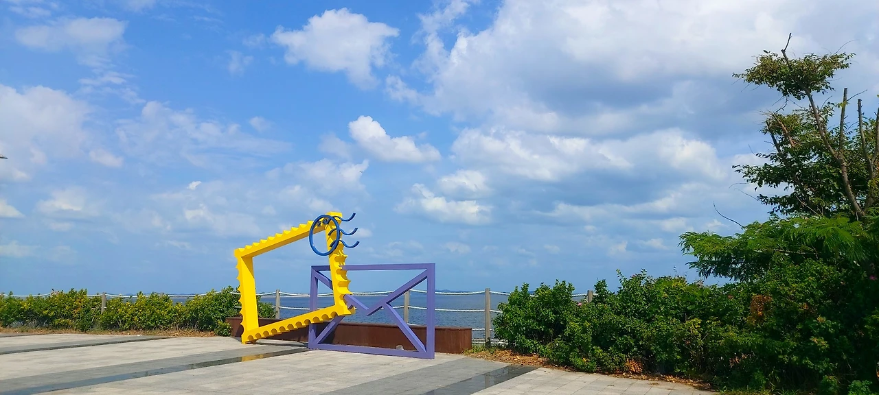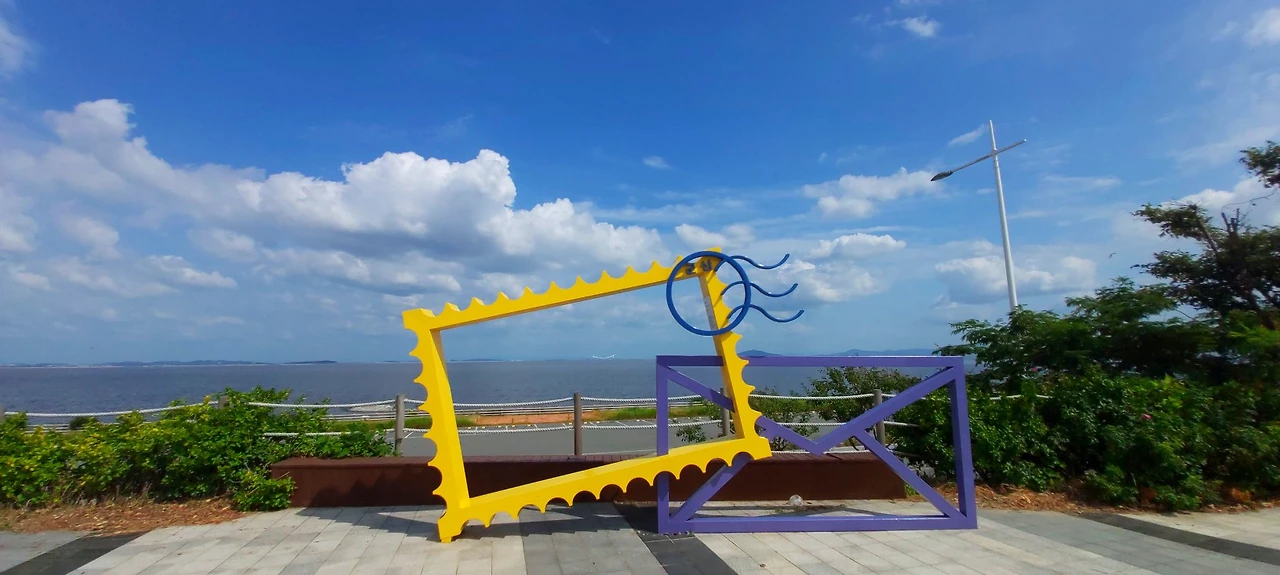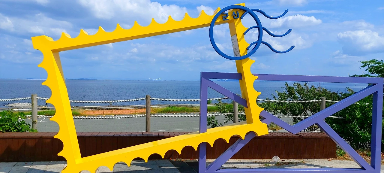 전라북도 군산시와 고군산군도, 부안군을 연결하는 길이 33.9km의 새만금 방조제를 달리다보면, 중간에 쉬어가는 해넘이휴게소가 있다. 거기 작년까진 안 보이던 엽서모양의 조형물이 보였다.