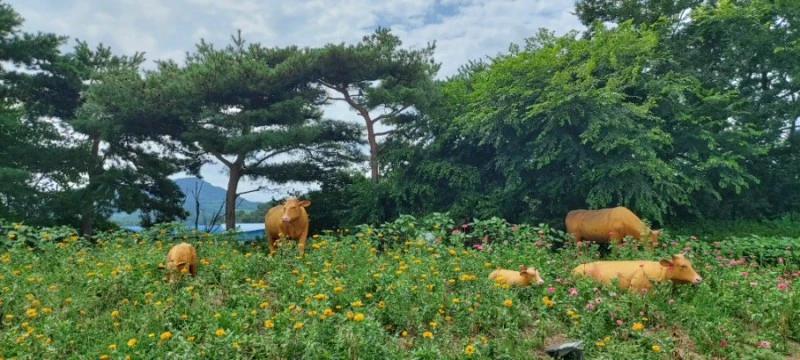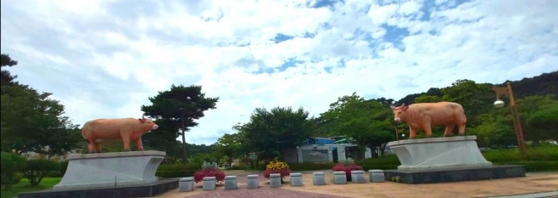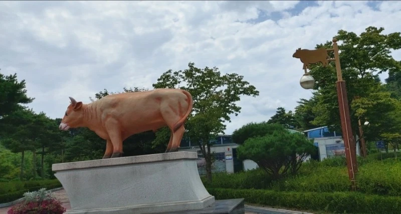 황새공원까지는 차로 20분쯤 걸리는데, 가는 길에 길가에 소들이 막 보여서 뭐지? 하고 봤더니 광시한우거리 근처라 소조각상들을 배치해서 공원을 만들어놓았다. 광시한우가 예천의 유명한 먹거리라더니, 한우거리가 정말 길었다. 오늘은 국밥을 먹었으니, 다음엔 여기로 한우 먹으러 오자고 하다가, 마침 하나로마트가 보여서 음료수도 사고, 다음날이 생일인 딸의 미역국에 들어갈 소고기를 사러 들렀다. 확실히 소고기값이 싸고 좋아보였다.