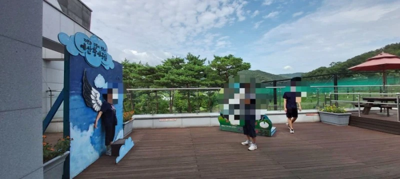 2층 옥상에서는 아래에 황새사육장이 바로 보이는데, 살아있는 황새들을 볼 수 있어 황새 구경도 했다.