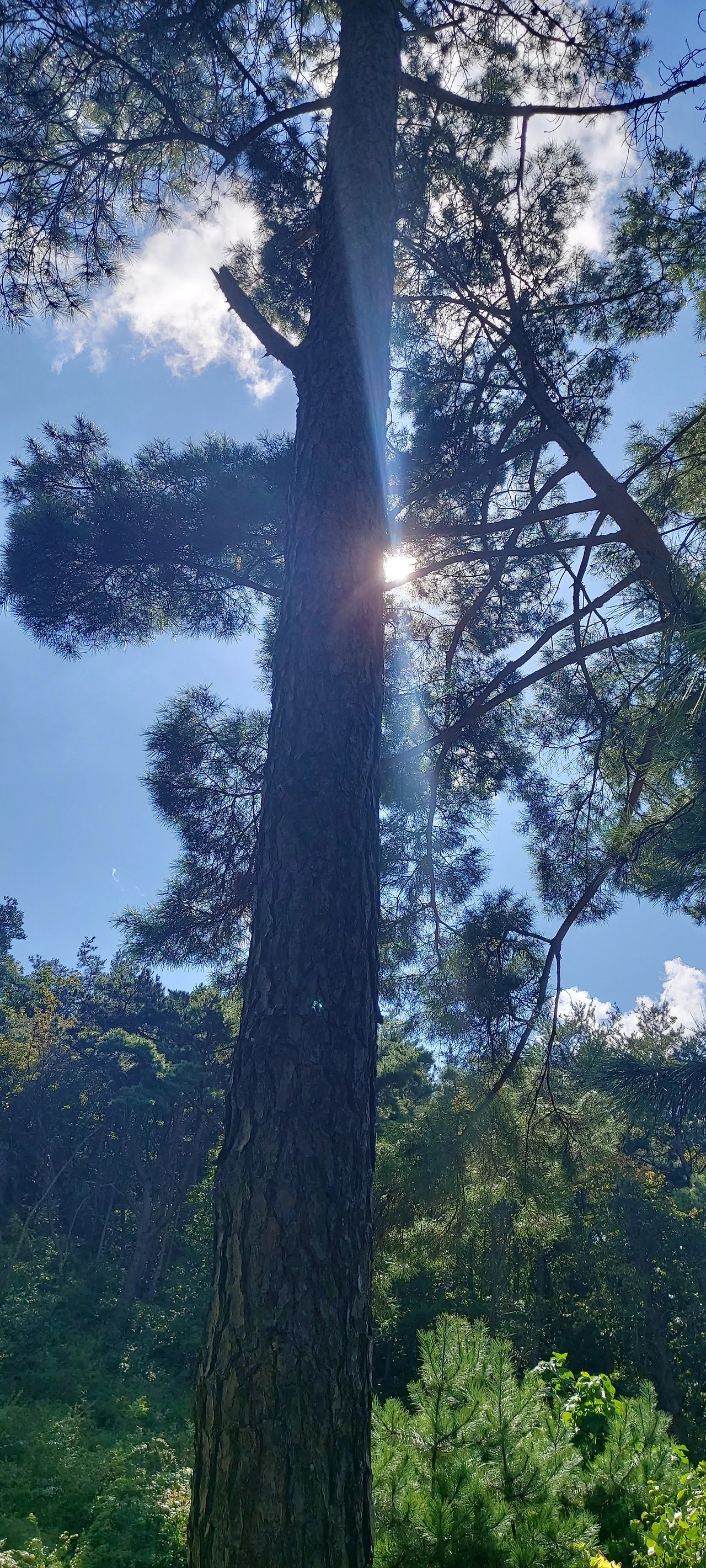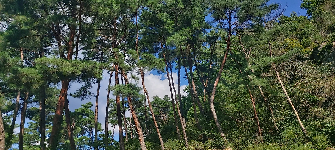 주차장 소나무그늘에 차를 대고 창문 열고 누