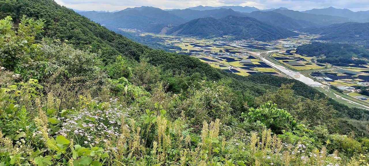 산길에는 줄장지뱀이랑 사마귀도 보이고, 도토리랑 똥 닮은 버섯도 보이고, 개쑥부쟁이 미국쑥부쟁이 왕고들빼기 뚝갈 이고들빼기 구절초 산박하 잔대 같은 야생화도 많지만 염소똥이 정말 많더라구요. 산 아래 부리흑염소 농장에서 키우는 흑염소들이 탈출해서 덕기봉까지 마실 다니나 보더라구요.