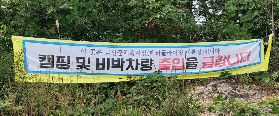 특히 덕기봉 바로 입구 아래는 턱이 심하게 져서 차로는 진입이 불가해 보이는 데 어케들 차로 올라갔나 궁금할 따름이었어요. 게다가 바로 앞에는 금산군청에서 걸어둔 차량금지 현수막이 있으니, 괜히 차로 갔다가 걸려서 벌금 내거나 창피당하지 말고 30분 산책한다 여기고 걸어 올라가시길 강추합니다.