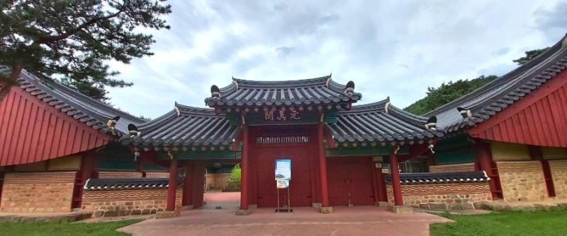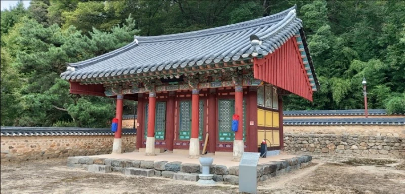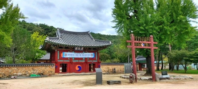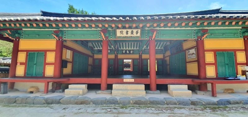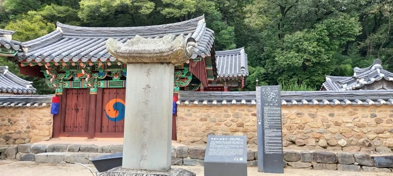 서원 입구에 선 홍살문과 200년 수령의 은행나무는 이곳이 신성한 공간임을 알리는 역할을 하는데, 홍살문 옆에는 신분의 고하를 막론하고 타고있던 말에서 내려 걷게 한 하마석이 남아있다.