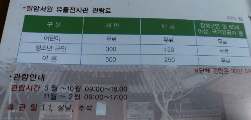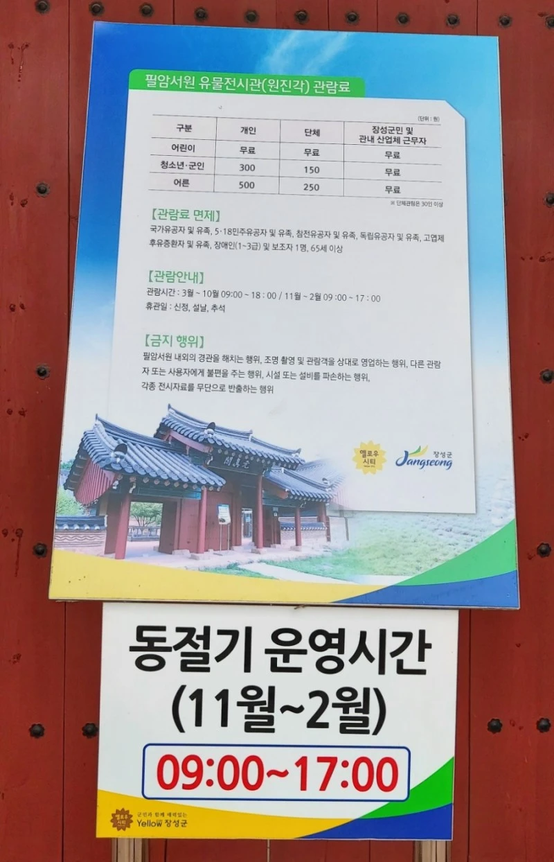 전시실의 전시물도 풍부하고, 자료정리도 잘 되어있고, 서원을 보는 것만으로는 얻지 못할 깊이있는 정보들을 문화해설사의 친절한 설명과 함께 얻을 수 있으니 유물전시관 관람도 꼭 하시길 추천한다. 관람료가 있긴 하지만 소액이고, 이렇게 낸 입장료가 장학금으로 쓰인다고 생각하니 필암서원의 장학사업에 일조를 한 것 같아 뿌듯한 기분도 느낄 수 있다.