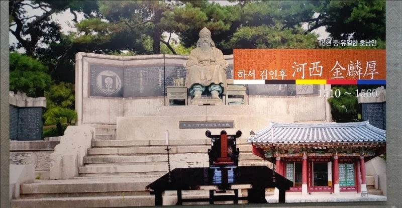 하서 김인후(1510~1560)는 조선 중기의 문신으로 1540년 문과에 합격하고 1543년 홍문관 박사 겸 세자시강원 설서를 역임하여 당시 세자였던 인종을 가르쳤다. 1545년(인종1) 인종이 즉위 8개월만에 사망하고 을사사화가 일어나자 병을 이유로 사직하고 고향인 장성에 돌아와 성리학 연구와 후학 양성에 정진하였다.