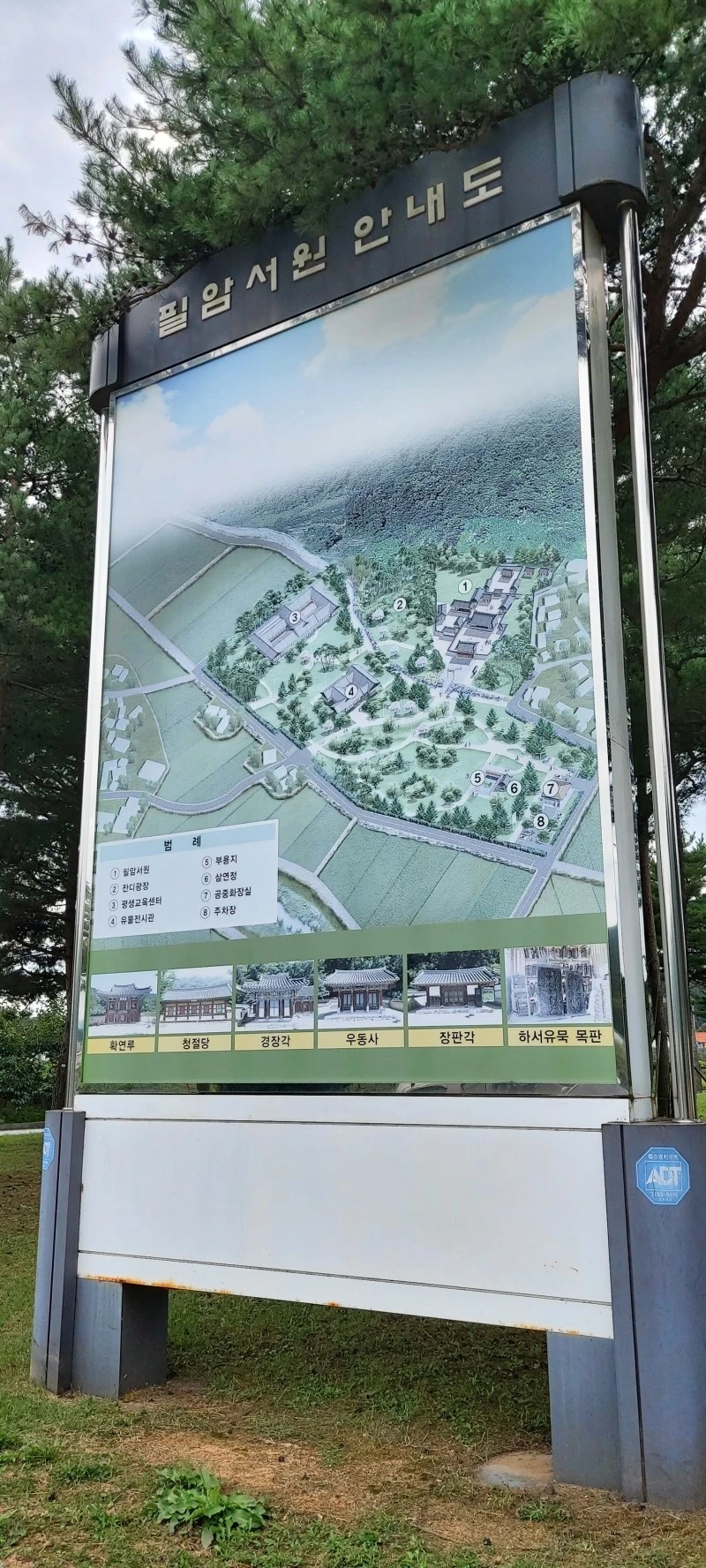 유물전시관을 나와 삼연정 앞으로 해서 주차장에 다다르니, 주차장 입구에도 필암서원을 알리는 큰 기념석이 서있고, 그 아래 설명판도 있었다. 아까는 이걸 왜 못 봤지? 눈에 들보가 씌었나~ 장성을 매번 지나치면서도 다니는 길목에 있던 필암서원을 그냥 지나쳤던 것처럼 관심이 없으면 보여도 보이지 않고, 있어도 모른 채 지나친다. 아는 만큼 보인다는 말을 새삼 느끼며 필암서원을 떠나왔다.